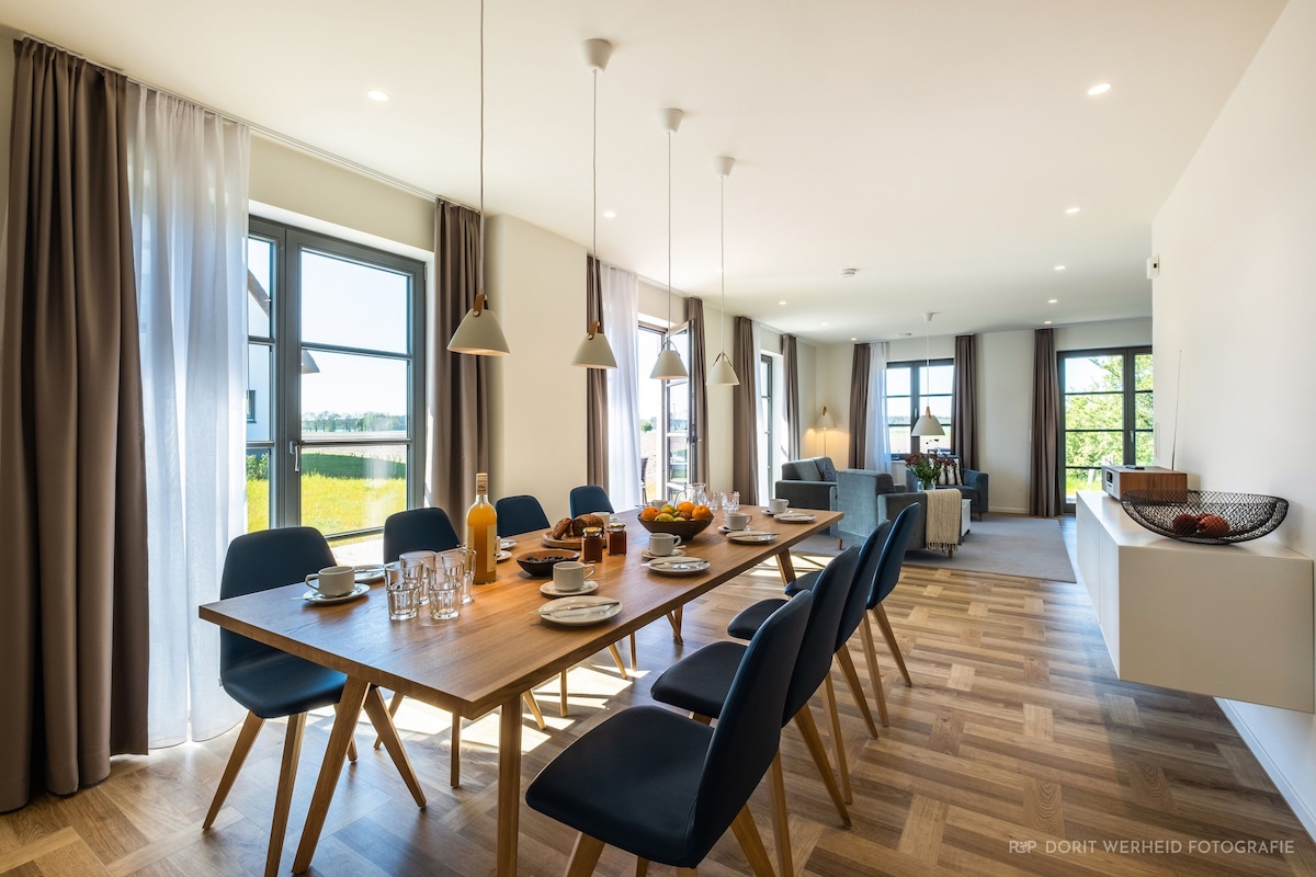 Starting from August 1st, 2023, our luxurious thatched roof house on the island of Usedom invites you to stay. It can accommodate a total of 8 people and is perfect for a vacation with family and friends. Enjoy summer days on the large terrace in the garden and go on an adventure to explore the island. The beautiful fireplace and sauna provide a cozy winter retreat. For workaholics, we have set up a fully equipped office.
