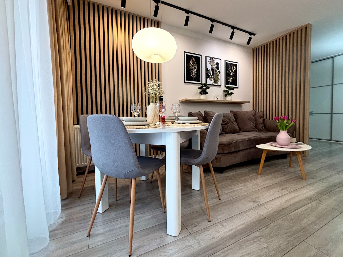 Nowoczesny apartament w Sea & Forest Resort, przy granicy Wolińskiego Parku Narodowego. Przestronny, w pełni wyposażony, z balkonem, klimatyzacją i aneksem kuchennym. Goście mają prywatne miejsce parkingowe w garażu podziemnym oraz dostęp do strefy wellness i fitness resortu w cenie. W okolicy liczne szlaki piesze i rowerowe, ok. 1 km do Zagrody Żubrów, 30 min spacerem do morza lub darmowym meleksem. Idealny na relaks i aktywny wypoczynek.
