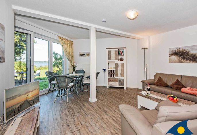 Genieße die Ruhe, das Wasser und die gute Luft - in unserem Wellness-Apartment für max. 5 Personen bleiben keine Wünsche offen. Unsere Highlights für dich: Stilvolle Wohnküche mit Zugang zur großzügigen Loggia mit Blick in den Garten und auf's Wasser. Nutze den Fitness- und Wellnessbereich mit Fitnessgeräten, Tauchbecken, Sauna, Schwimmbad (ca. 1,60-180 m tief & ca. 27 Grad) und Chill-out-Bereich mit Blick auf den Peenestrom. Parke kostenlos direkt am Haus.