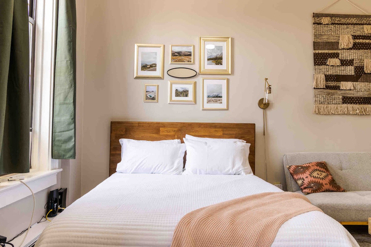 Welcome to our newly remodeled & charming centrally located apartment! As you step inside, be captivated by the exposed brick walls that add a touch of rustic elegance. The apartment boasts 20-foot ceilings, creating an open and airy atmosphere. Take advantage of the streetcar stop located just outside, ensuring seamless transportation to all major attractions then come home and relax in the plush king-size bed after a day of exploring the city. Book now and indulge in comfort and convenience!