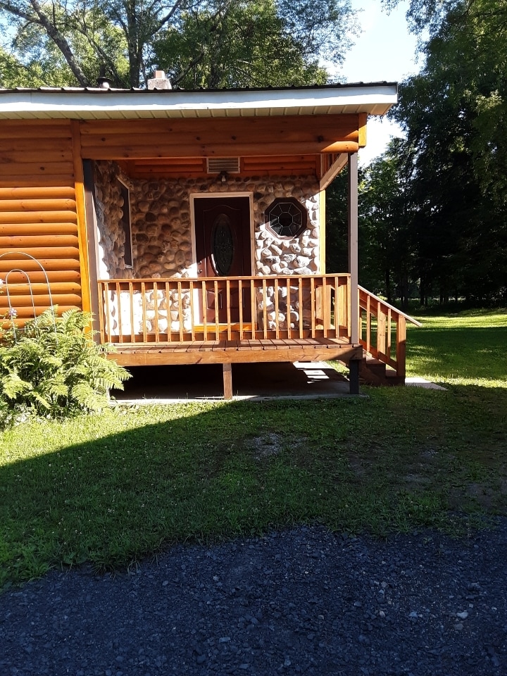 At Collier’s Hideout you’ll find everything you love about camping the wilderness, blended with comfort in a cozy furnished apartment. Enjoy hiking over 4 acres of private forest, and wind down with the sounds of ‘Mad Tom’ at a brook-side common area providing a Blackstone griddle in a screened in pavilion. Free campfire wood included with your stay so you can enjoy s’mores if you just can’t be pulled away from the peaceful serenity, then retire in comfort in a comfortable apartment.