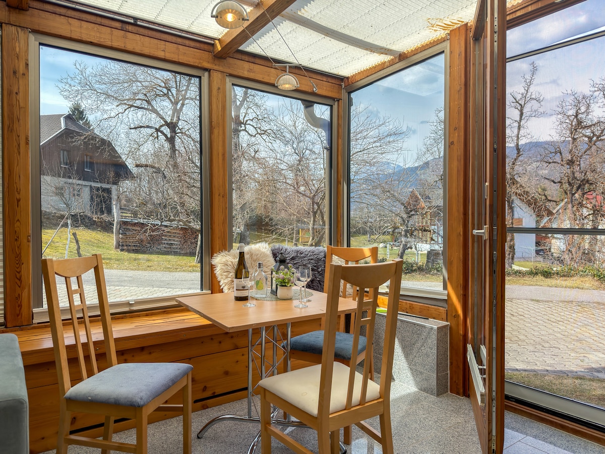Apartment mit 2 Zimmern zum relaxen, ca.40 m2, auf Hügel im Ort, Panoramablick über Gitschtal (bis italienische u slovenische Berge), helle Fenstertüren zu möblierter SüdwestTerrasse mit Gartenanteil, gemütliche Leseecke, Sat-TV, Internetradio, Solar + Fernheizung, das Haus über 90% Co2-neutral öffentliches Schwimmbad und Pitzeria in 250m, Kurhaus mit Schwimmhalle und Sauna (Gebühr) 150m Schilifte in Sicht ca 900m, Einzelbelegung: -10€/N Zusatzperson: +15€/Nacht auf Anfrage