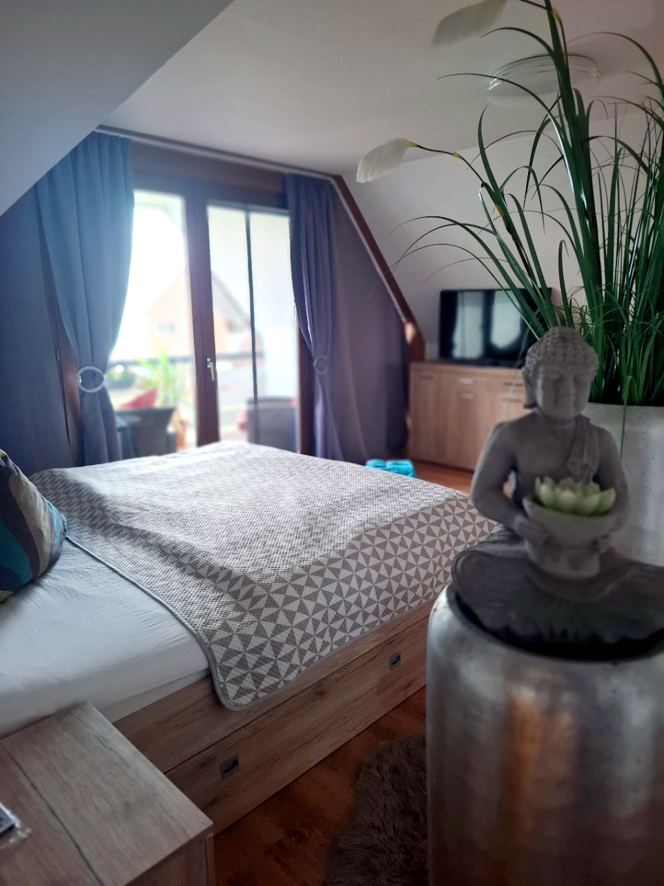 Das Dachgeschoss dieses im Jahr 1865 erbauten Bruchsteinhauses , wurde komplett neu ausgebaut . Es hat eine wunderbar ruhige Lage mit Sicht auf Felder und Bäume ! Zur Ruhe kommen ist hier garantiert ! Fussläufig ist hier der Golfplatz und ein See zu erreichen , um den herum man wunderbar spazieren oder joggen kann. Fahrradtouren lassen sich von hier aus einfach planen... In die wunderschöne Altstadt sind es ca 5 km