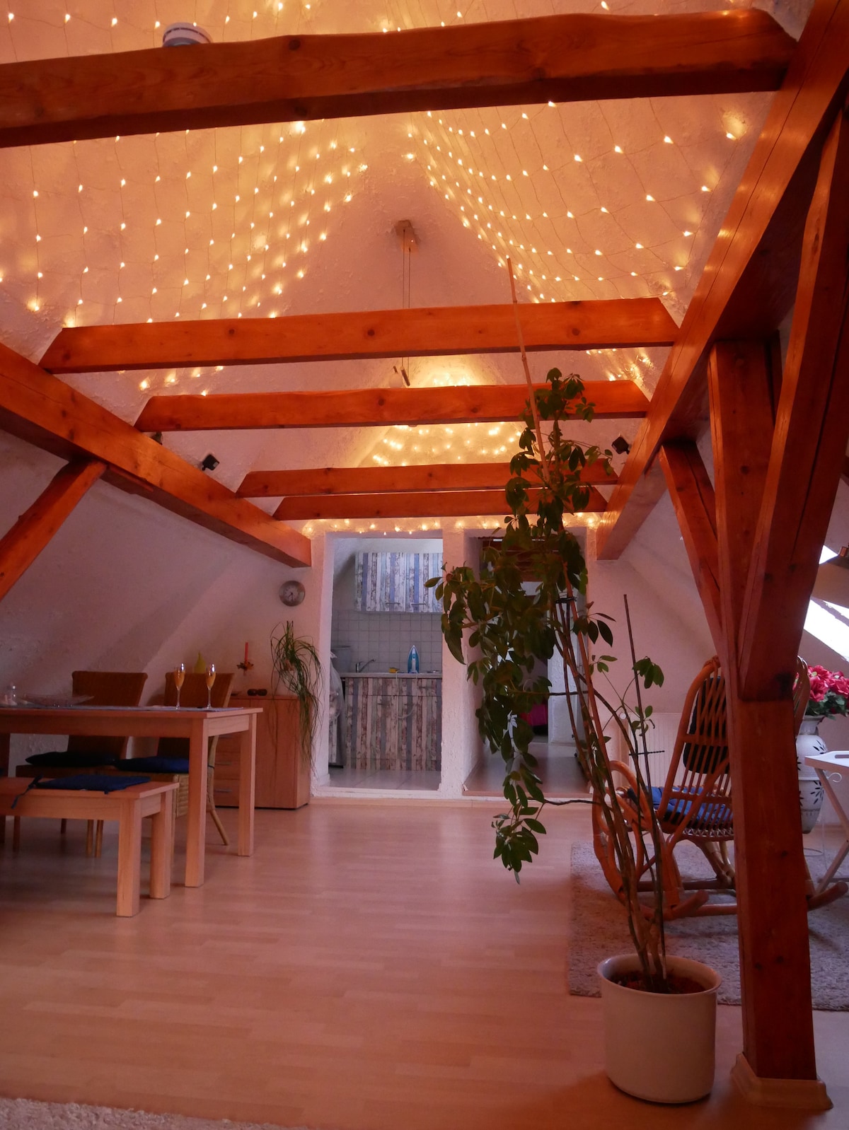 Unser Ferienappartement befindet sich im Dachgeschoß unseres Bungalows. Es besteht aus einem Zimmer mit einer Wohnecke, einer Schlafecke und Küchenecke. Dazu kommt das Badezimmer. (Einzimmerappartement) Du erreichst es durch die Haupteingangstür unseres Hauses über den gemeinsamen Flur und die Treppe nach oben, über unsere Galerie. Im oberen Geschoss wohnen nur unsere Gäste, es ist auch abschließbar mit separatem Schlüssel. Das Haus liegt in einer ruhigen Wohnsiedlung.