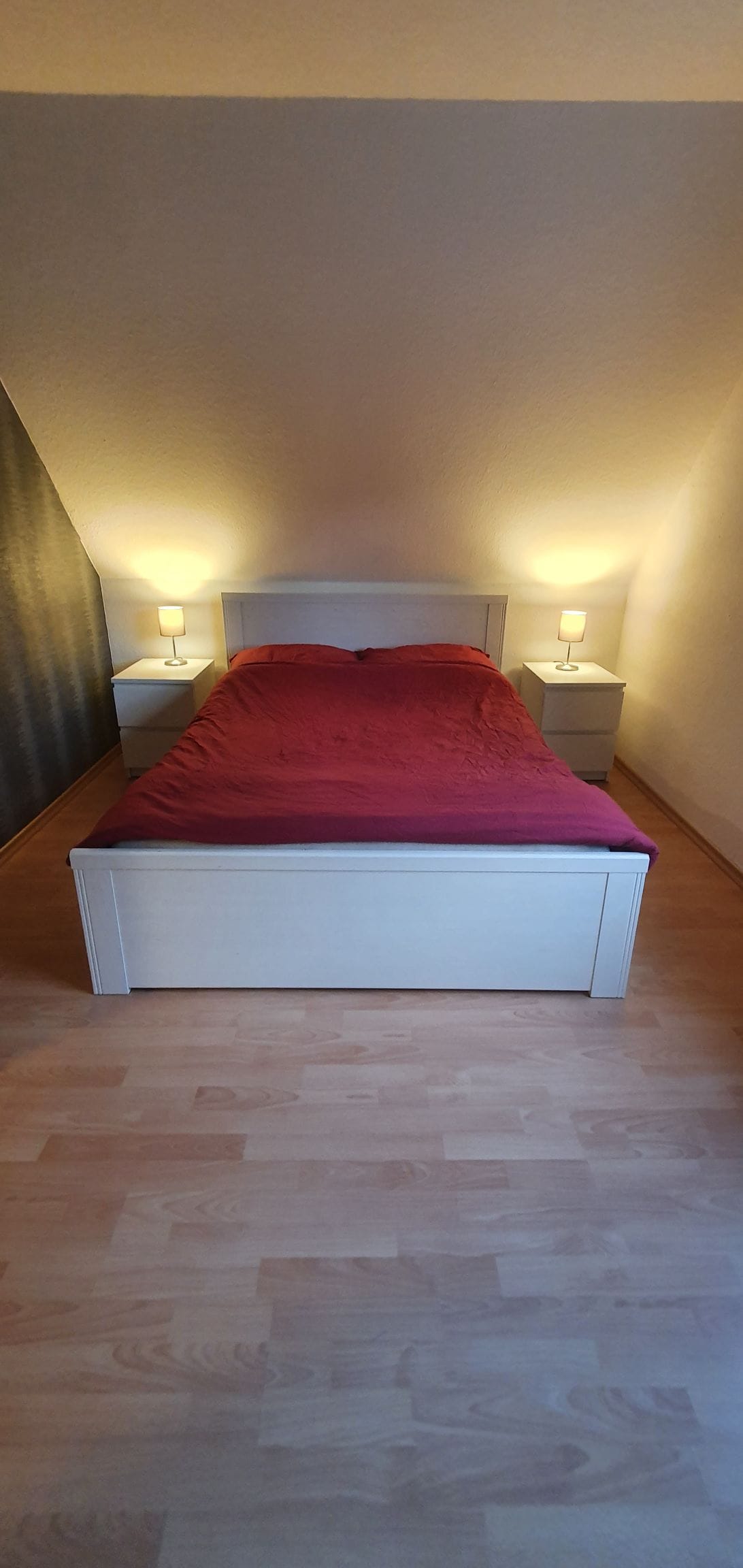 Die ca. 41 qm große Wohnung befindet sich im 1. Stock. Das Wohnzimmer ist ausgestattet mit einem Sofa. Im Schlafzimmer steht ein Doppelbett mit den Maßen 1,80x2,00 m und ein Fernseher. Die Küche mit Essbereich ist komplett ausgestattet und beinhaltet Elektro-Herd mit Backofen, Kühlschrank, Spüle, Wasserkocher, Toaster etc.. Die Wohnung verfügt über ein neues und modernes Badezimmer. Die Wohnung wurde vor kurzem kernsaniert. Die Wände wurden mit Anti-Schimmelplatten &- putzen fertiggestellt.