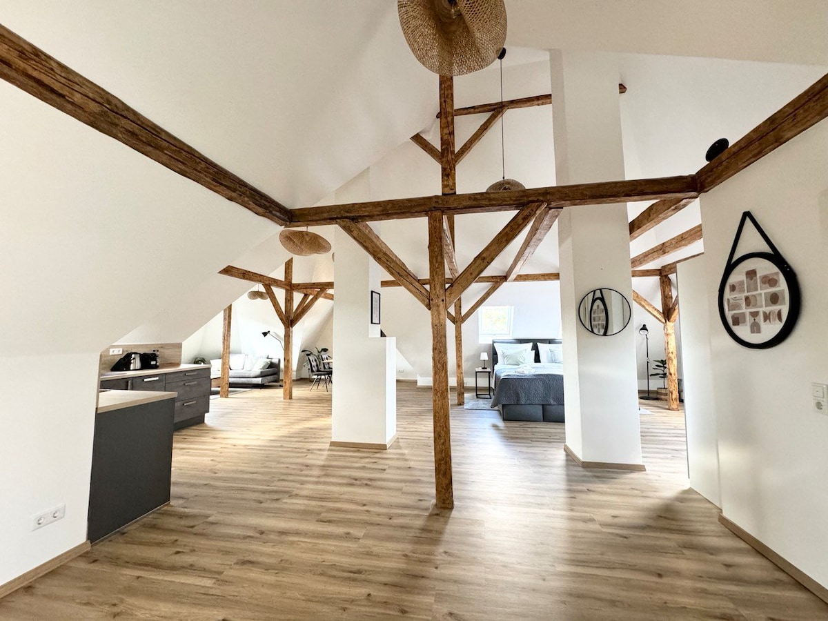 In einem der ältesten Fachwerkhäuser Detmolds, direkt in der historischen Innenstadt befindet sich dieses komplett neu sanierte Apartment. Der besondere Charme dieser Unterkunft liegt in vielen Details, z.B. dem original erhaltenem Holzständerwerk und den hochwertigen Innenausbauten. Ein Schlafzimmer mit Doppelbett, Schlafsofa für 2 Pers. im Wohnzimmer, Essbereich, Küche und Bad bieten viel Komfort. Unterkunft in der Fußgängerzone nahe des Marktplatzes. Restaurants und Cafés direkt vor der Tür.