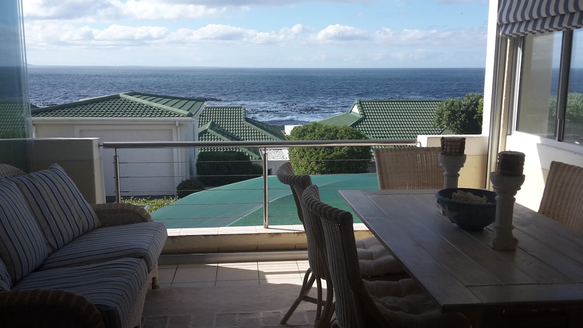 This stunning apartment has the loveliest view of Walker Bay brimming with sea life and rich with the Champagne air.The decor is absolutely lovely and the apartment is extremely well equipped. The sea views are especially good from the balcony upstairs. A lovely place to unwind after a day of exploring our beautiful Hermanus and all it has to offer. The cliff paths, restaurants, art galleries are within 2 mins. walk. There is plenty safe off road parking & a lovely private built in braai area .