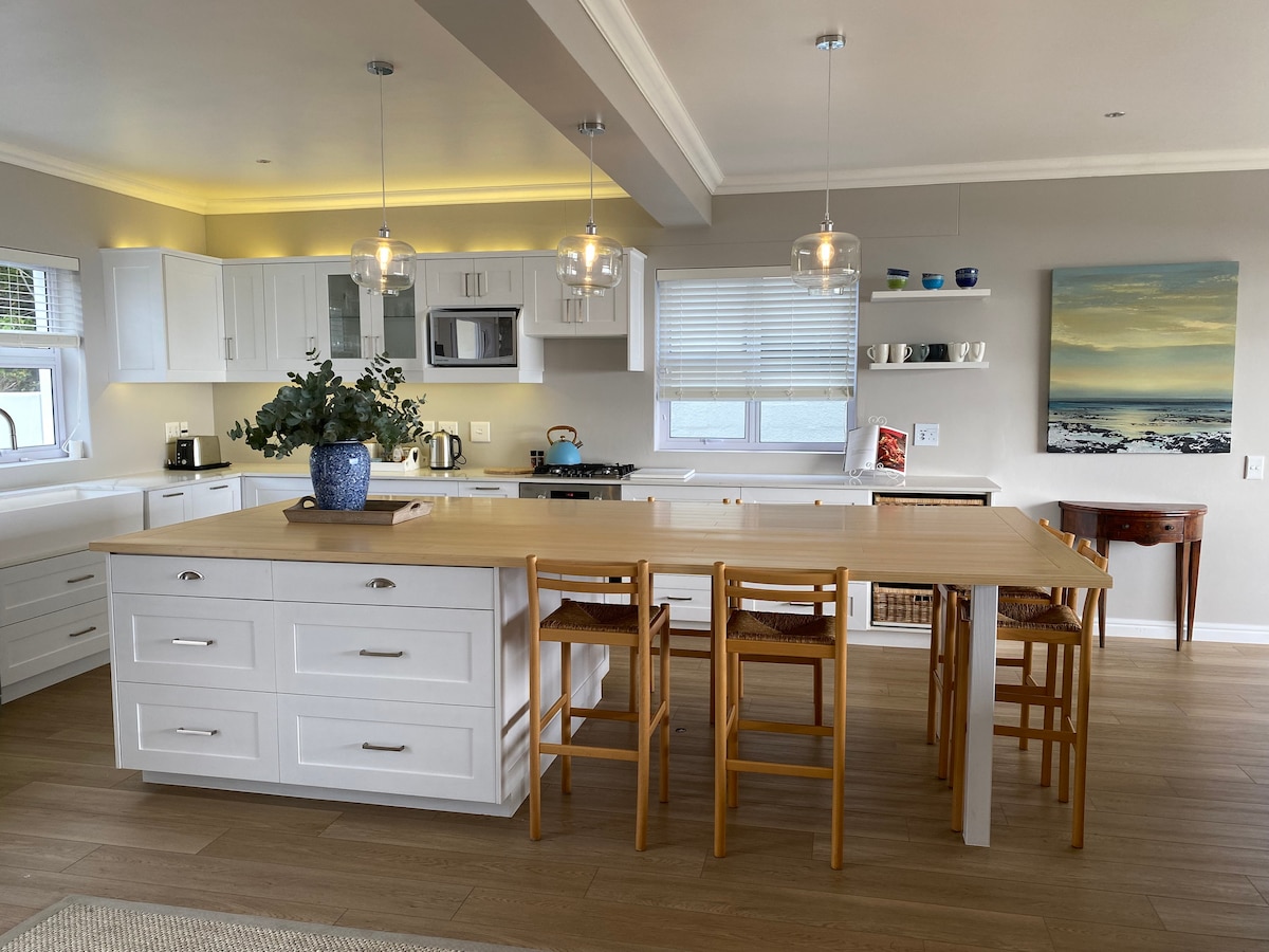 Whale Huys is a Self-catering, direct oceanfront villa with panoramic views of Walker Bay and the Klein Rivier Mountains. Perfect for a relaxing holiday away, just 2 hours from Cape Town. With its stunning views and just the sounds of nature, Whale Huys seems far removed from the busy hustle and bustle of our daily lives. but is close to the wineries and renowned country restaurants the area is famous for. Outdoor and cultural activities abound. Just 5 min. from Gansbaai for shopping.