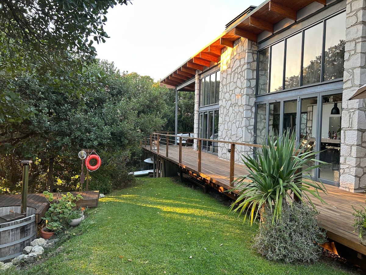 A safe, secluded beachfront house sleeping up to 6 persons. Enjoy the ocean from each room. Breathtaking sunsets over the ocean. Long walks on the beach across the road. One of the best-situated properties in Pearly Beach. Across the prestigious Blue flag status beach, Castle Beach. "Blue Flag Status" is an eco-label for beaches recognized as a trusted symbol of clean quality, environmental awareness, and environmental practices. Cleaned according to AirBnB's C-19 Enhanced Cleaning Protocol.