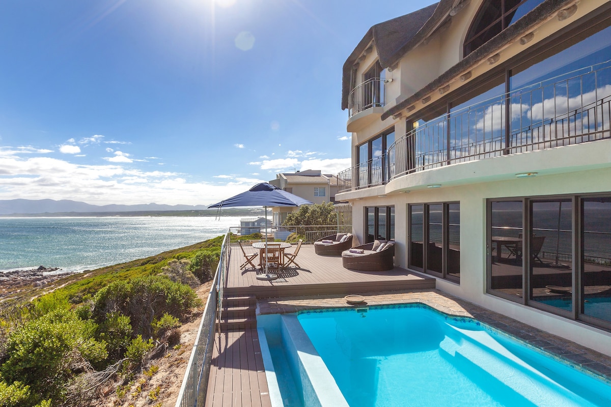 Whale Huys is a Self-catering, direct oceanfront villa with panoramic views of Walker Bay and the Klein Rivier Mountains. Perfect for a relaxing holiday away, just 2 hours from Cape Town. With its stunning views and just the sounds of nature, Whale Huys seems far removed from the busy hustle and bustle of our daily lives. but is close to the wineries and renowned country restaurants the area is famous for. Outdoor and cultural activities abound. Just 5 min. from Gansbaai for shopping.