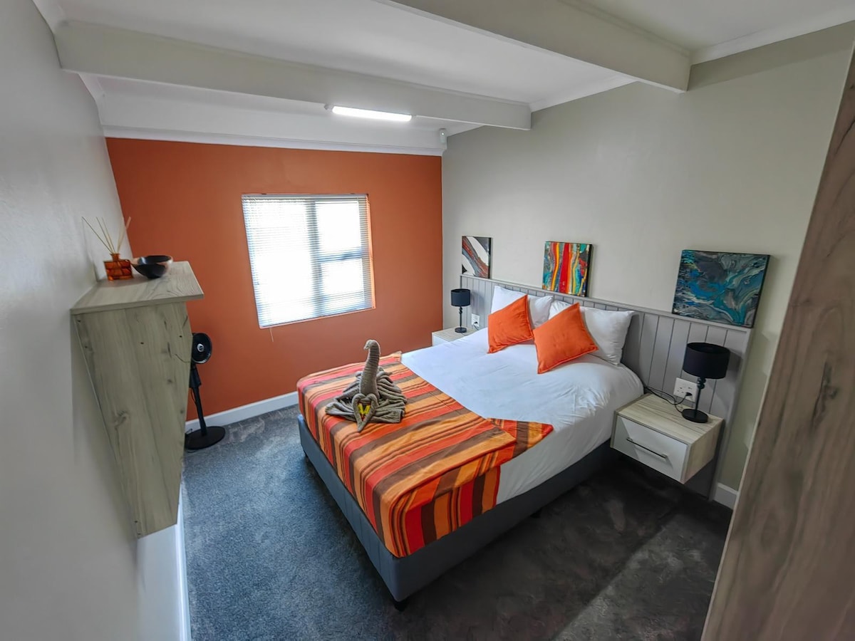 Tuis & Tevrede is a cozy two-bedroom flat for up to four guests, perfect for families with young kids. The jungle gym keeps little ones happy while parents relax. Located in a quiet, safe area just 200 m from the cliff path, near Fernkloof Nature Reserve & the golf course. Guests can also enjoy no load-shedding & fast Wi-Fi. Outdoor enthusiasts will receive our curated list of local mini-adventures, shared after booking. Pet-friendly by approval only.