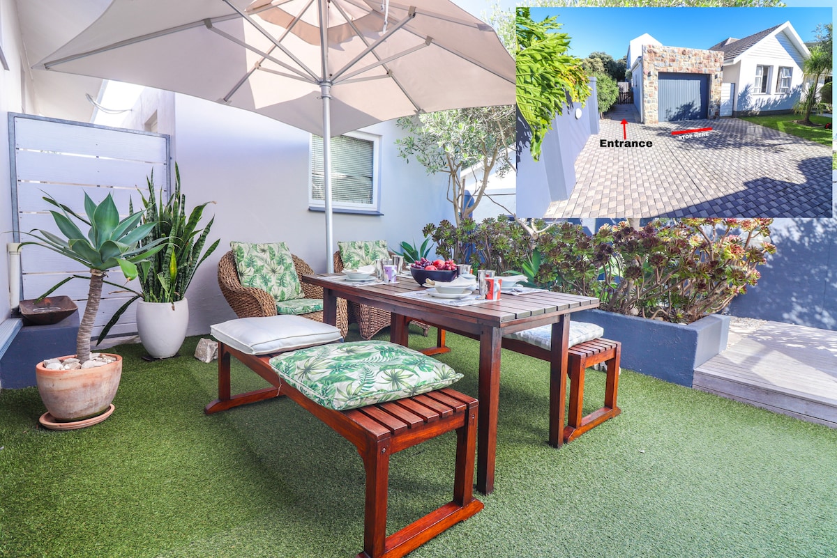 A secluded and private garden cottage with seperate entrance, 1.5 km from the town center. The Hermanus cliff path and harbour only minutes walk from your front door. Explore by foot, by car or just relax in your peaceful garden. Make the most of your stay with our South African braai facility. The hospital and clinics are just a few blocks away. Includes smart TV, DSTV Premium & internet.