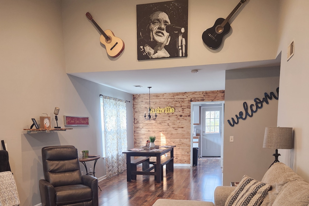 The Music Inn is a former recording studio and now features our new Pool, Putting Green, Bocce Court and Year Round Hot Tub. We live upstairs and love hosting our guests, who are welcome to share our new backyard! Relax in a completely private walkout basement guest suite. Includes: theater room, Gigafast wifi, Kichenette with Keurig coffee & nice variety of snacks. We are 3 mi from grocery store, 7 mi from a mall, 5 mi from downtown Franklin & 20 mi to Nashville. We can't wait to host you!