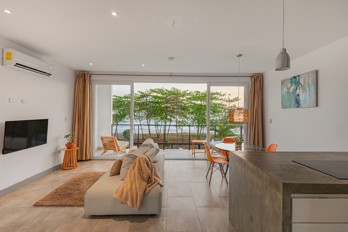 Experience Oceanfront Bliss in Our Modern 2-Bedroom Beachfront Condo Wake up to the soothing sound of waves and breathtaking panoramic ocean views in this stylish condo in Jacó’s exclusive South End beach. Nestled in a tranquil neighborhood for privacy and relaxation—minutes away from Jaco's vibrant restaurants, shops, and nightlife. Enjoy your morning coffee on the private balcony, take sunset strolls along the pristine shore, or simply unwind with all you need for the perfect getaway.
