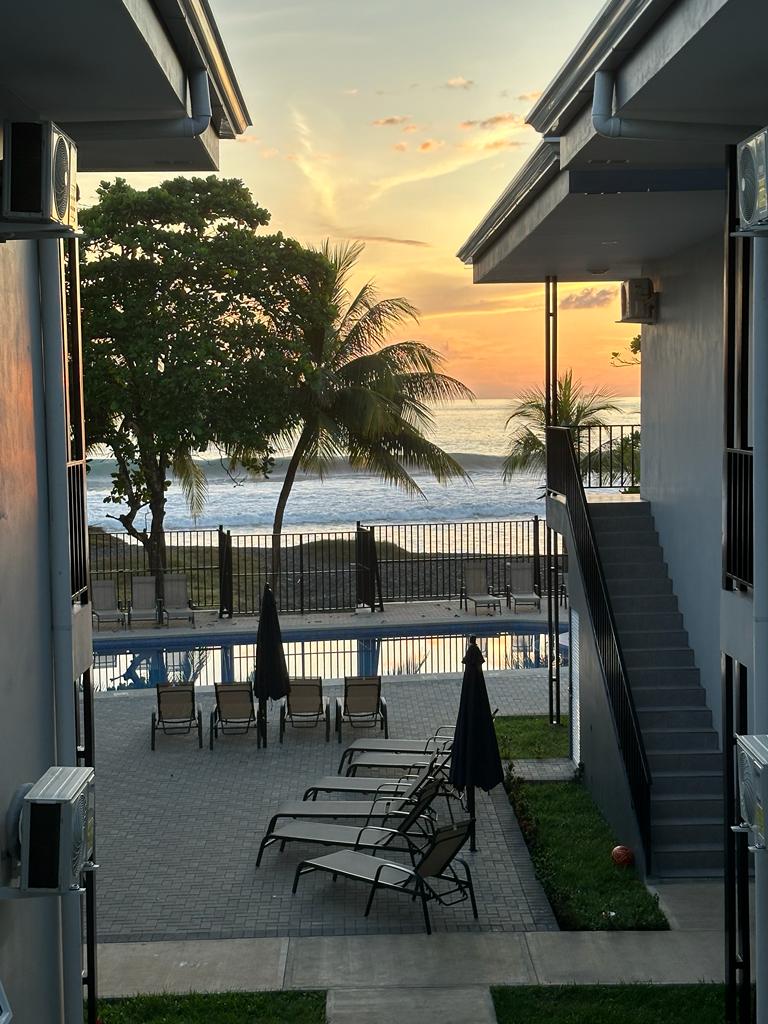 Best location in the heart of Jaco. Enjoy ocean views from your awesome king size bed in a 2024 built, oceanfront studio on the beach, 1 block away from the main Jaco strip. Walk to everywhere! This complete private romantic studio, on 8 th floor has its own entry door, its own intimate balcony with boasting Ocean views, mountains & city. Securely gated, 2 pools, gym, co working area, barbecue area and an incredible 13 th top floor sunset deck with 360 degree views. Pura vida!