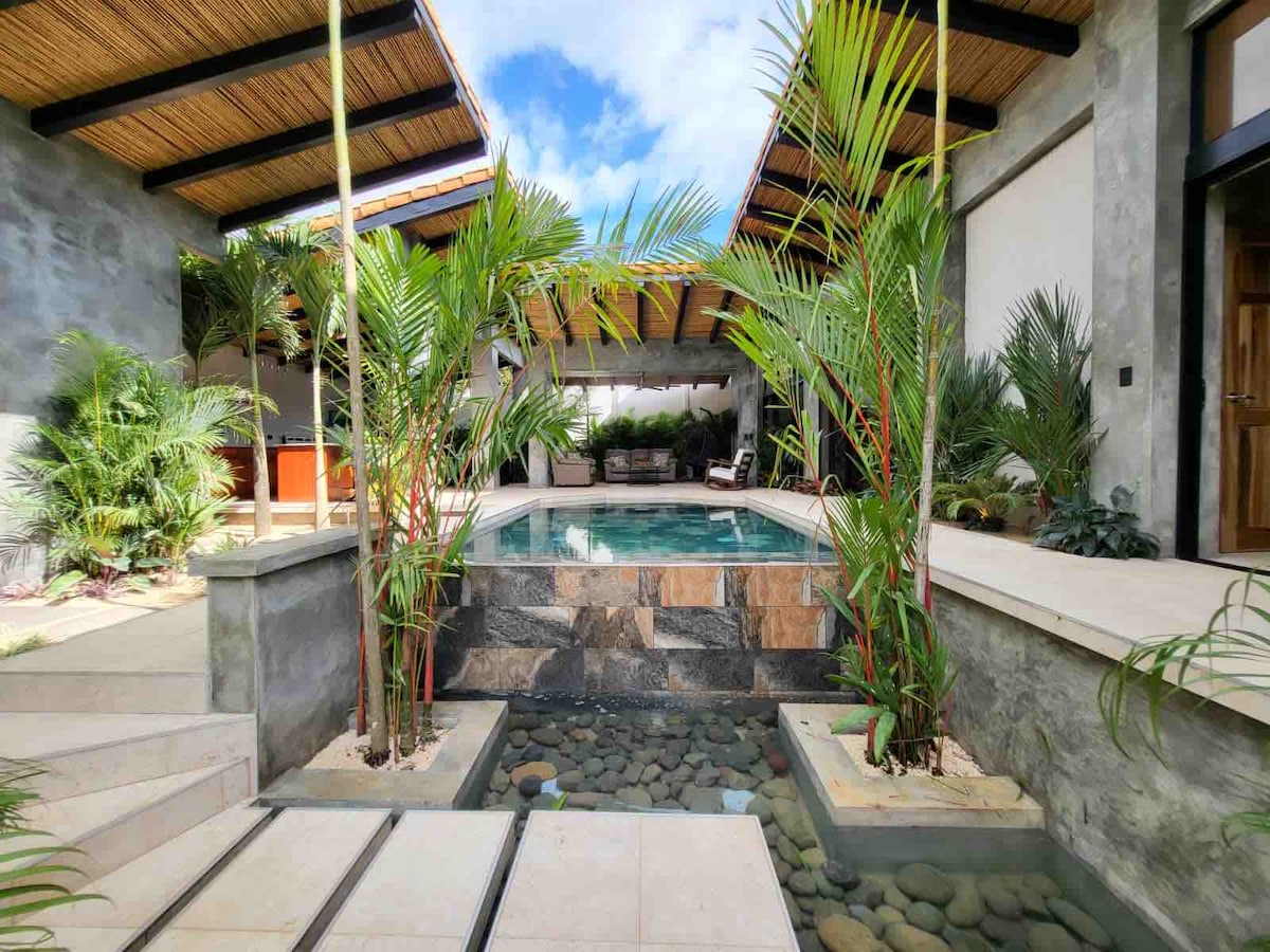 Welcome to Zen 1- The property is located just 7Min to downtown Jaco/Jaco beach and just 1.5 hr from the San Jose airport, 15 min to Los Suenos and minutes to some of the top beaches in the area such as Playa Mantas & Blanco. The property features a stunning resort style pool surrounded with garden or tropical plants with mountain views & we often have a lot of visitors such as monkeys and patriots all while being just minutes to Downtown Jaco/ Jaco beach