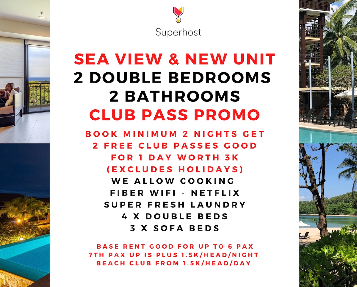 Check-in: 3:00 PM Check-out: 12:00 PM - 2 loft-type bedrooms - 5-8 pax - Kitchen - Bathroom with tub - 55" 4K TV with Netflix and YouTube Premium - Private swimming pool (3ft - 4.5ft deep) - Balcony - Carpark (gated and not gated) - Outdoor grill - Open Shower Area - WiFi Overnight bed capacity: - 2 Queen size bed - 2 adults each - 1 Twin size floor mattress - 1-2 adults - 1 L-type sofa - 1-2 adults Additional folding bed: 1,000 Php Pet Fee: 1,000 Php (1-2 small dogs only)