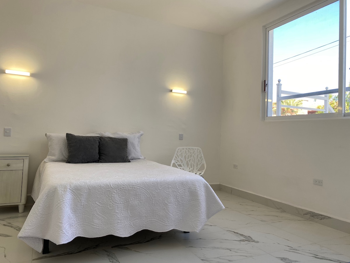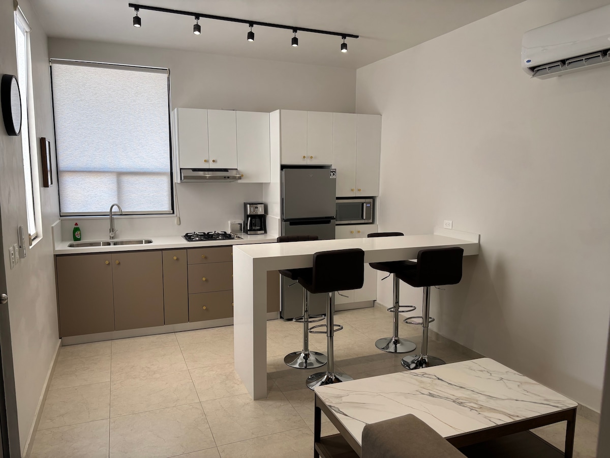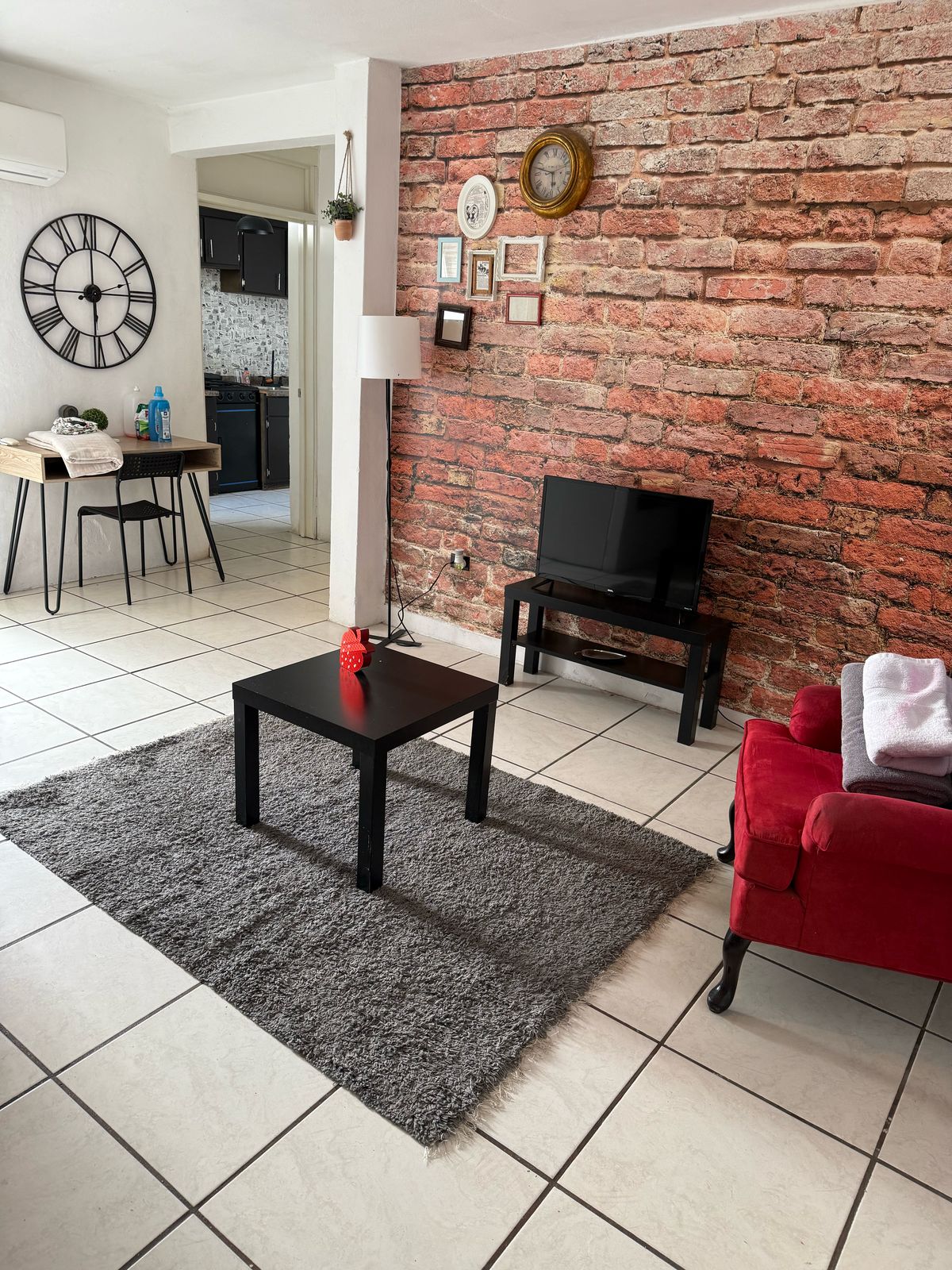 Excelente ubicación, departamento céntrico recién remodelado. Cuenta con cama matrimonial muy cómoda, cocina, internet de 200 megas, smart tv, cocina equipada y baño completo. Ubicación inmejorable! A la esquina de la calle se encuentra un súper donde puede hacer su mandado, a una cuadra se encuentra un deportivo muy bonito para hacer ejercicio y correr, a cuadras de hospitales, farmacias, papelerias y de vías principales! SE FACTURA Déjame saber como te puedo ayudar, me encantará hospedarte.