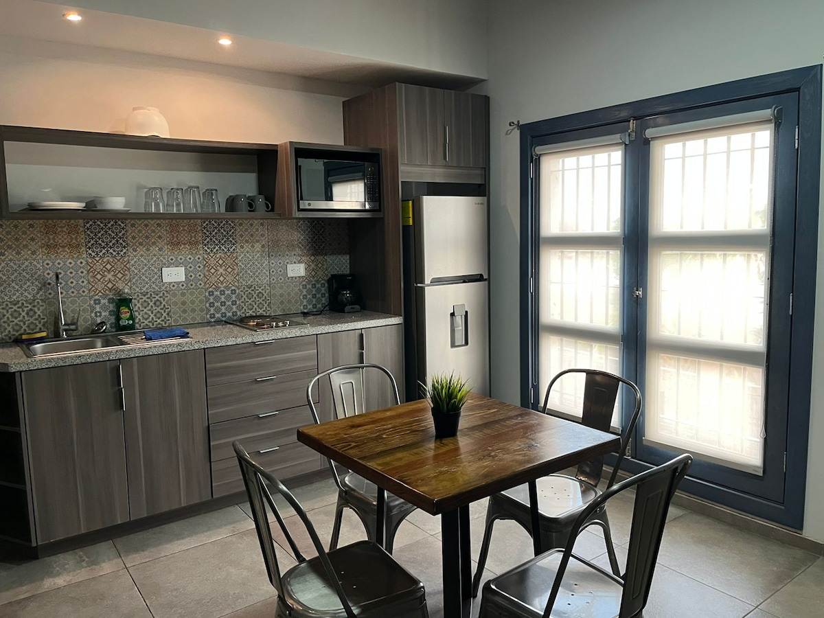 Departamento nuevo recién amueblado. Tres amplios espacios: Área independiente de cocina nueva totalmente equipada, sala y comedor. Una amplia habitación con dos camas y segunda habitación privada con una cama. Baño completo compartido para recamaras. Cuenta con área de lavandería y medio baño exterior para las visitas. Excelente ubicación cerca de zona hotelera, a una calle del Blvd. Kino casi frente a parque La Ruina, supermercado a 3 minutos caminando, restaurantes, salida a Nogales, etc.