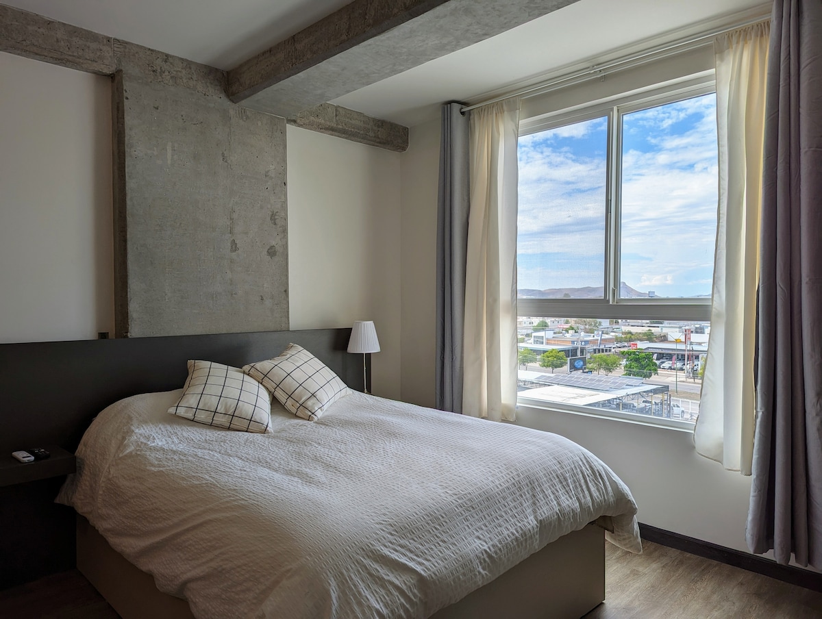 Live the experience of staying at Distrito Lofts! Distrito Lofts is the new concept of apartment rentals in the city of Hermosillo, Sonora. Luxury apartments, with spaces designed and furnished with the best quality, taking care of all the details for your safety and comfort. Fully equipped apartments with all services included, cleaning included 3 days! Additional single size bed for reservations of more than 2 people.
