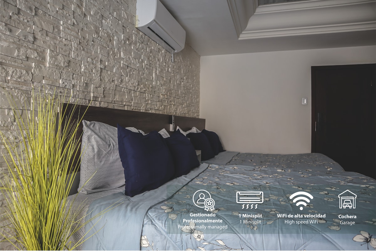 Disfruta de la sencillez de este alojamiento tranquilo y céntrico. Cuenta con cocina completa, baño con jacuzzi, internet independiente, área para trabajar, smart tv, acceso a lavadora y secadora y estacionamiento.