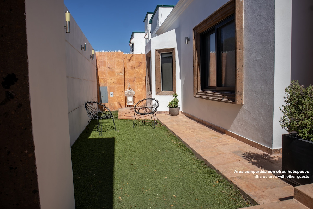 Habitación privada ideal para familias que visitan el Consulado Americano, a solo 2 minutos caminando. Cuenta con baño y cocina propia. Ademas tienen acceso a alberca y áreas abiertas para descansar. Comodidad, privacidad y excelente ubicación para tu cita o viaje de trabajo. **Estacionamiento a disponibilidad** **2 personas INCLUYENDO NIÑOS Y BEBES**