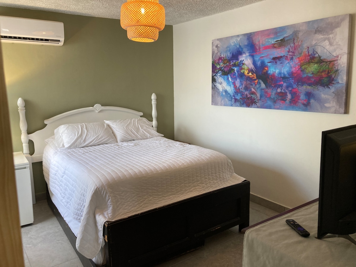 Moderno y cómodo departamento independiente para estancias cortas y largas, cuenta con todos los servicios para disfrutar de un espacio privado, con cocina equipada, cama , smart tv , wifi . El departamento tiene una ubicación muy céntrica , cerca de hospitales: San José, IMSS, Chávez, ISSSTESON, Restaurantes , cines y tiendas de conveniencia. Varias rutas de camiones pasan por el departamento.