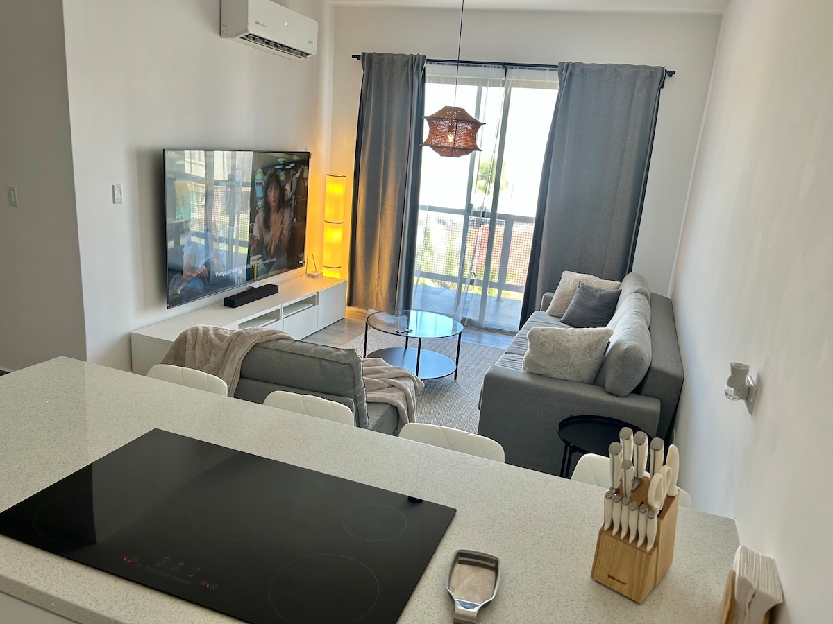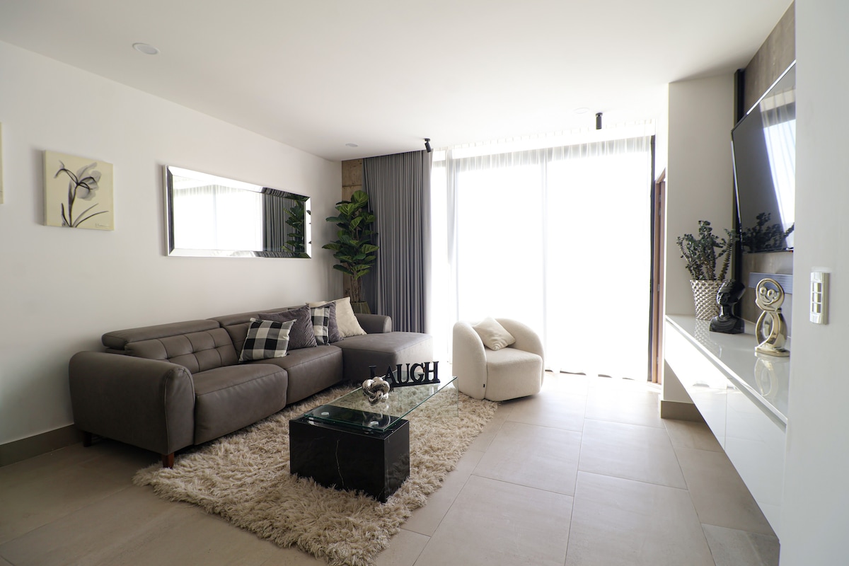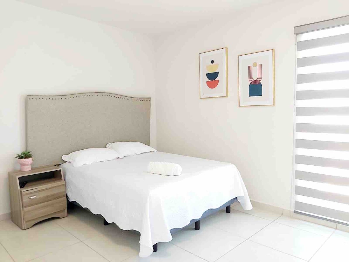 Este alojamiento único cuenta con espacio suficiente para una tranquila estancia en compañía de los tuyos. Pensado para tu comodidad con mucho espacio y complementos para que te sientas como en casa, con internet, tv, sofá cama, una amplia estancia y dos habitaciones. Cercano a lugares de interés como el Consulado Americano, Club de Golf y hospitales. Con supermercado en la parte inferior, cafetería, gasolinera y banco. En una estancia de más de 5 noches se agrega botella de vino de bienvenida !