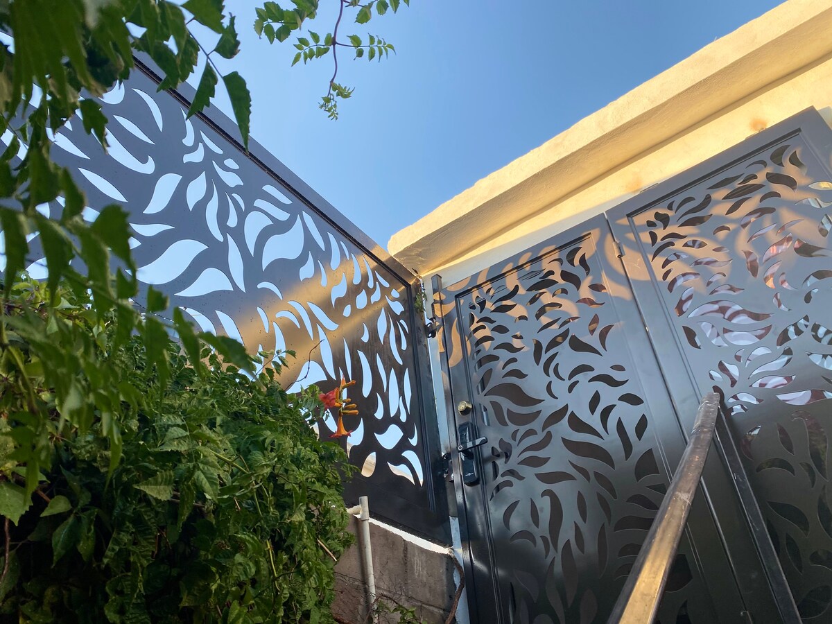 Disfruta de una experiencia con estilo en este alojamiento céntrico, la habitación se encuentra en planta alta, cuenta con una terraza y comedor al aire libre las cuales son compartidas con 2 habitaciones más, en planta baja se encuentra una casa completa que también es arrendada por medio de la aplicación, el acceso es el mismo para ambos pisos, sin embargo cada habitación es independiente a la casa, solo comparten el acceso. La zona es muy tranquila y cuenta con vigilancia las 24 horas.