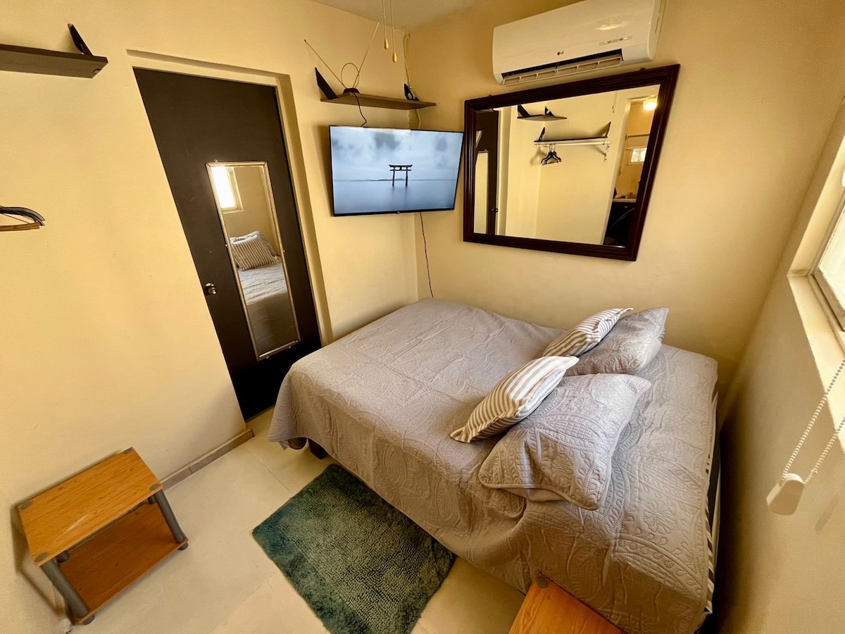 Cómodo estudio independiente, diseñado para ofrecer privacidad y una estancia placentera. Ideal para trabajo, trámites o escapadas rápidas, con entrada independiente, cama individual, cocineta equipada, espacio de trabajo, baño privado y loveseat con TV. Ubicado en una zona céntrica y tranquila, a 8 cuadras de Costco, con rápido acceso al Blvd. Colosio, plazas, restaurantes y más. A 5 mins del Consulado y 6 mins del centro, CAS y Centro de Gobierno. Práctico, cómodo y bien ubicado.