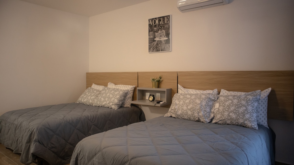 Relájate con toda la familia en este alojamiento donde la tranquilidad se respira. Habitación privada ideal para familias que visitan el Consulado Americano, a solo 2 minutos caminando. Cuenta con baño privado, 2 camas tamaño matrimonial, y cocina. Comodidad, privacidad y excelente ubicación para su cita o viaje de trabajo. *4 Personas INCLUYENDO NIÑOS Y BEBES*