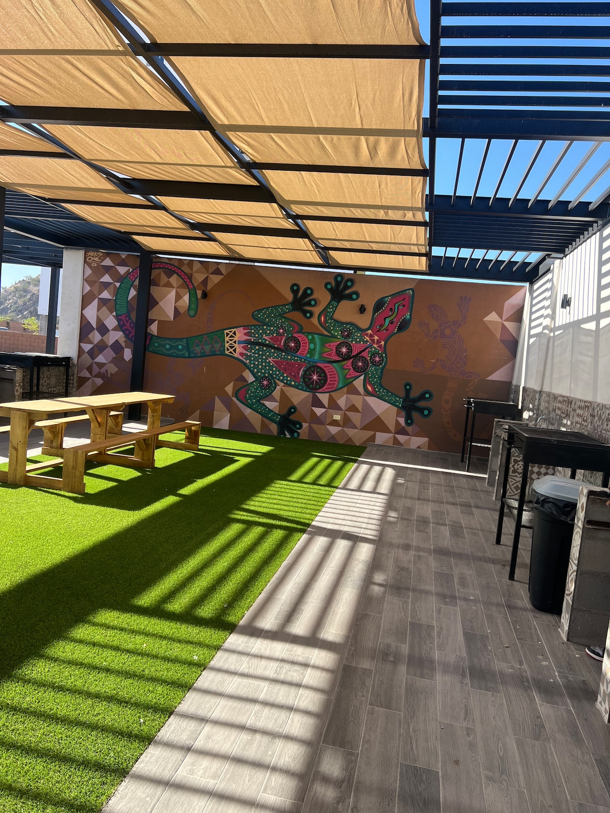 Unbeatable location, 1 km from the new American consulate. 400 meters from Walmart, Soriana, and shopping centers Plaza Ley Sahuaro and Plaza Girasol. Restaurants of all kinds of food. Stay in this modern, safe, comfortable, and independent apartment for short or long stays, perfect for up to 3 people. This newly renovated space offers you the peace and tranquility you seek. Equipped with everything necessary for an unforgettable stay.
