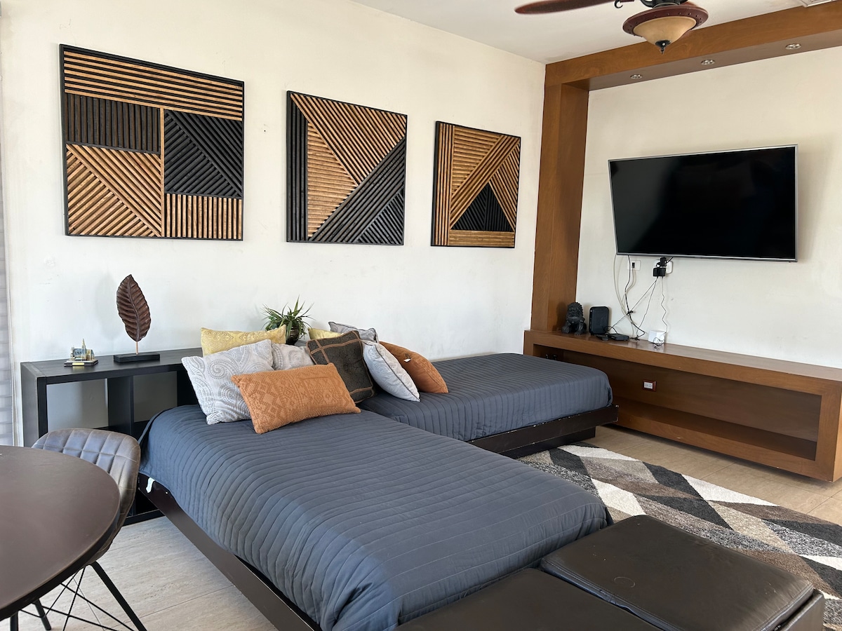 Moderno y cómodo departamento independiente para estancias cortas y largas, cuenta con todos los servicios para disfrutar de un espacio privado, con cocina equipada, cama , smart tv , wifi . El departamento tiene una ubicación muy céntrica , cerca de hospitales: San José, IMSS, Chávez, ISSSTESON, Restaurantes , cines y tiendas de conveniencia. Varias rutas de camiones pasan por el departamento.