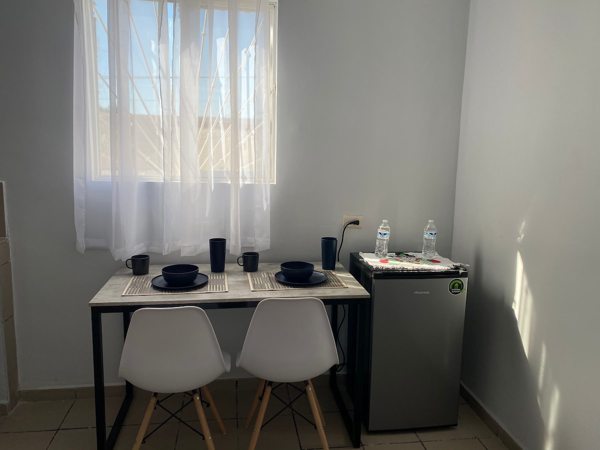 Departamento con cocineta, mesa, cama individual, cafetera, baño, cuenta con Internet, agua caliente refrigeración, refrigerador, microondas, televisión con cable. Se ubica en una zona muy tranquila, segura y céntrica. Muy cerca de la universidad de Sonora, de Catedral, de una de las calles principales de Hermosillo, cerca de áreas y plazas comerciales, supermercado, restaurantes, bares, centros de negocios además cuenta con área de Lavandería