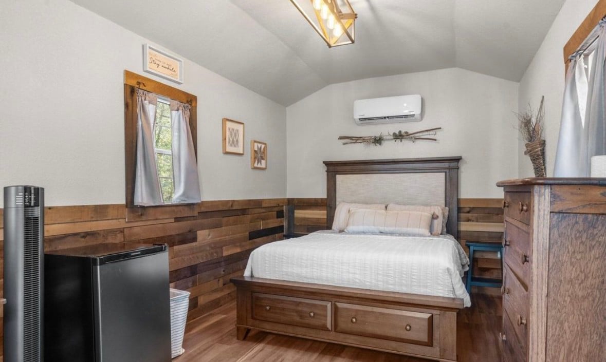 Nestled on a lush 10-acre homestead, our studio cabin offers the perfect escape from the hustle and bustle of daily life, while still being within an hour or two of all that central Florida has to offer. Whether you’re seeking a serene getaway or an intimate base for your outdoor adventures, our tiny cabin provides a unique blend of comfort and simplicity that includes your very own studio cabin, bath house and fire pit. Pet our donkey, highland cow or chickens, and let that hair down.