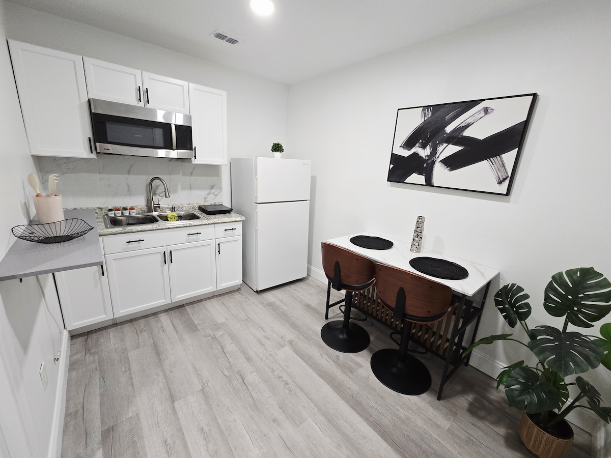 By heart of town conveniently close to many great amenities. Water & land adventures just minutes away! This cozy suite is super inviting & has all you may need for a comfy stay. Private entry with a large driveway parking. Open layout with en-suite bathroom&kitchenette. Windows for natural sunlight. Blue ambiance lights create an enjoyable atmosphere. New king hybrid mattress, seating &dining area, 55" smart TV, Free Wi-Fi + Streaming Apps. Mini fridge&freezer,microwave,coffee maker & more!