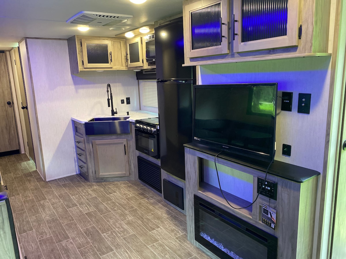2025 Forest River Salem 31 ft., Outside Refrigerator and grittle, slide outs, RV King Bed with electric head tilt plus queen and 2 bunk beds at the rear. Cooktop, oven and microwave, WIFI, TV, Central Heat and air, Electric Fireplace. Close to Rogers Park, Weeki Wachee Springs and the Gulf of Mexico. Use of Kayaks, canoe, life jackets and paddles included.