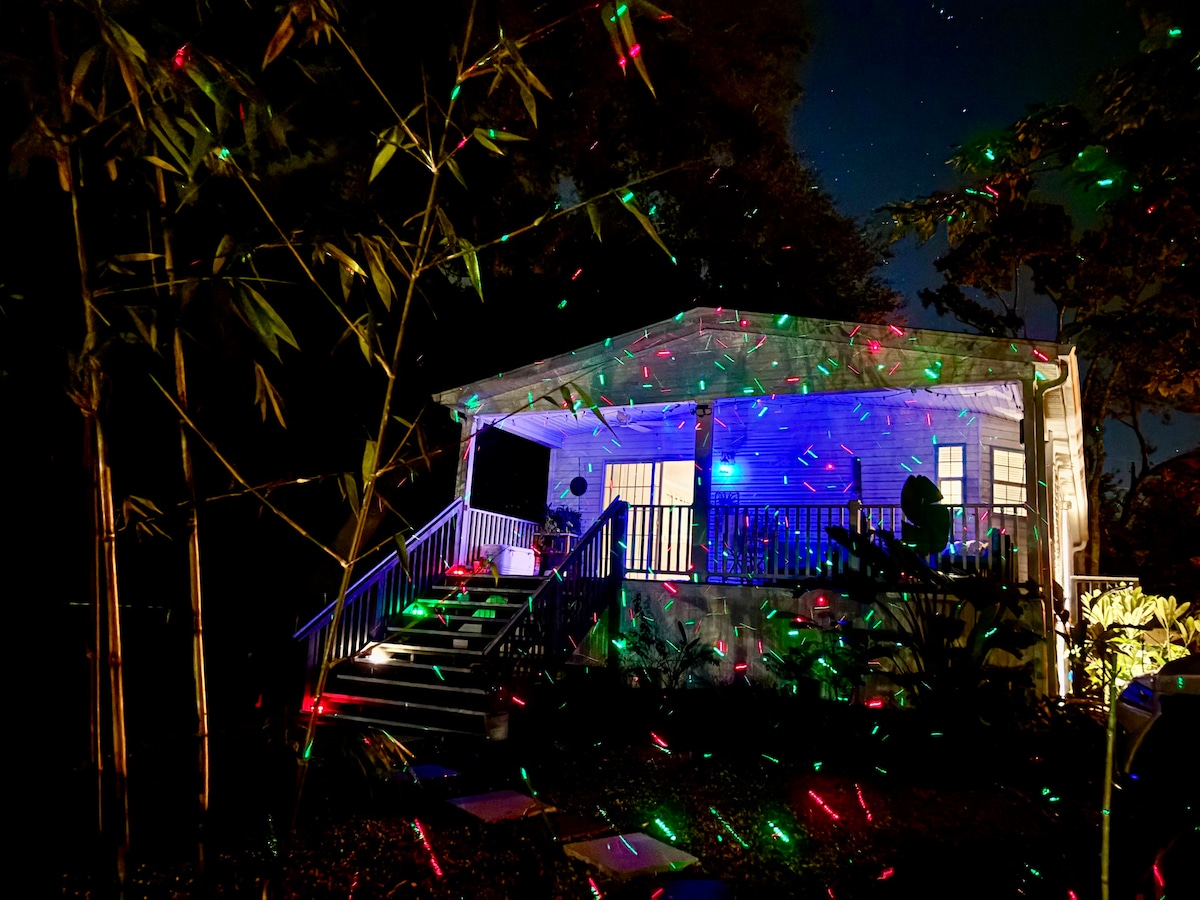 Embellish in this once in a lifetime, perfect getaway on Weeki Wachee River. A local favorite! Fully furnished pirate themed, 500 sq ft home with 1 bedroom 1 bath full kitchen and sofa bed. It has everything needed to create unique memories. Swim with manatees in the crystal clear spring-fed river. Have your coffee on the porch over looking the water and your favorite drink around the fire at night. Kayaks are included. Minutes from Weeki Wachee mermaids, Pine Island Beach and Homosassa Springs.
