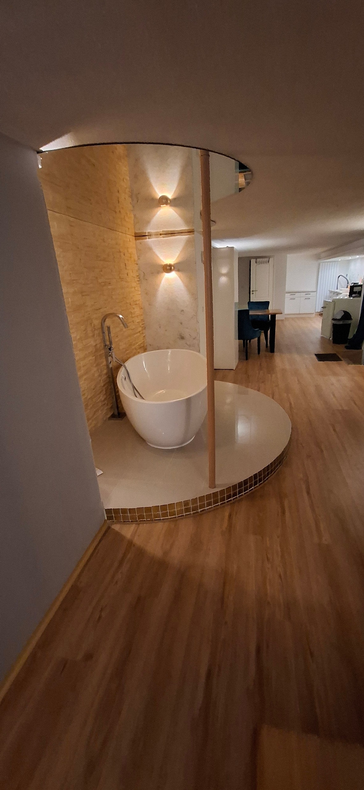 Diese stilvolle Unterkunft wurde geschmackvoll und gemütlich eingerichtet um Dir auch unterwegs ein Zuhause-Gefühl zu geben. Es handelt sich um ein Loft-Zimmer mit einer Größe von 46qm,einem Boxspringbett(1,80x2,00m) sowie einem Badezimmer en Suite & einer Klimaanlage für heiße Tage. Zudem hast Du die ganze 2.te Etage für Dich, sodass Du Privatsphäre genießen kannst. Das Zimmer befindet sich im DG (2.OG) und ist über das gemeinsame Treppenhaus erreichbar. WLAN und Netflix runden das Angebot ab.