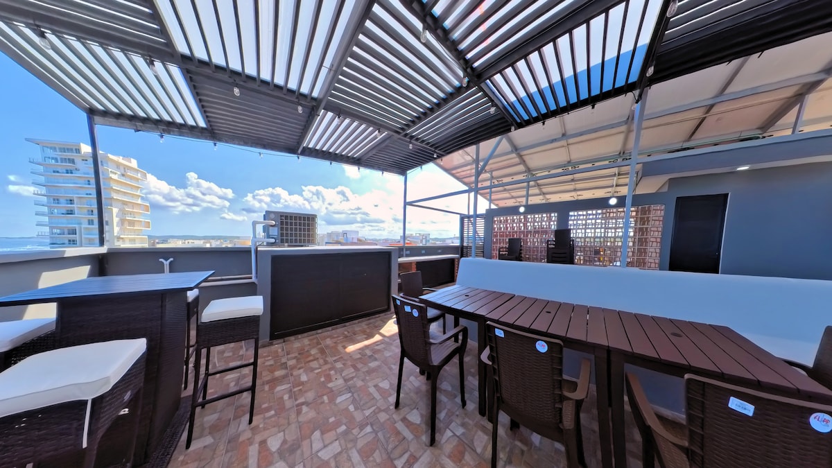 Spacious Apartment with Tapanco, air-conditioned rooms surrounded by tourist attractions, shopping plazas, 5 minutes from the historic center, 2 minutes from beaches 1 km from the Veracruz Aquarium. -Room with smart TV and tapanco with rest network for adults and children. -Modern dining room and kitchen. -Master bedroom with king size bed, bathroom, closet and smart TV. -Secondary bedroom with double bunk bed and a single bed and closet. -Garage for one car with electric gate.