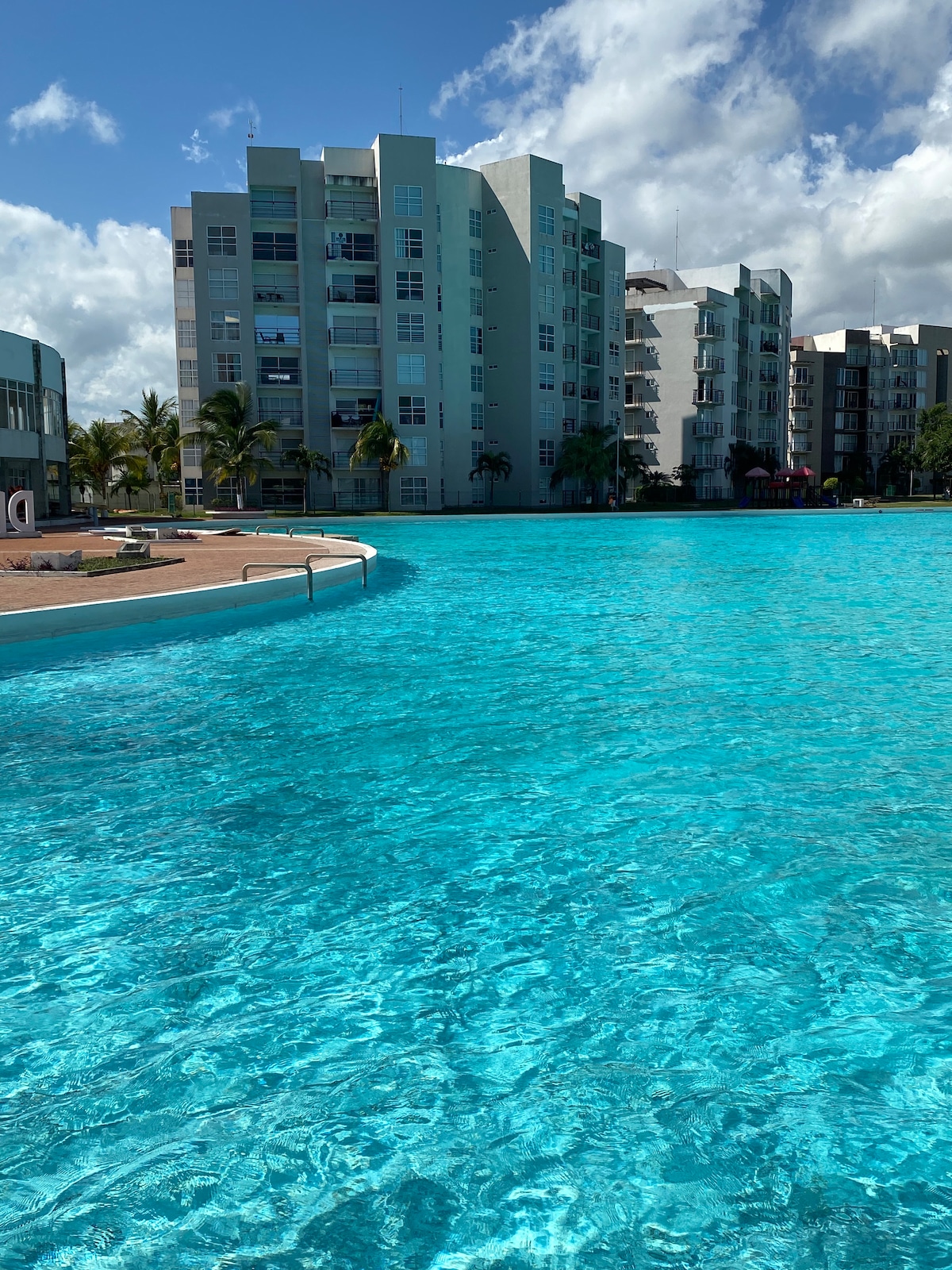Departamento con vista a Laguna espectacular y albercas en Dream Lagoons Veracruz. Esta laguna artificial tiene 3.2 hectáreas y 7 albercas, cuenta con renta de kayaks y lancha de pedales, juegos infantiles, pista para correr alrededor de la laguna, el departamento cuenta con WiFi, Smart TV con cable, aire acondicionado, cocina equipada, patio, estacionamiento gratuito y entrada independiente. Cuenta con 2 filtros de seguridad.Esta a 5 minutos del aeropuerto y 20 minutos del malecón de Veracruz.