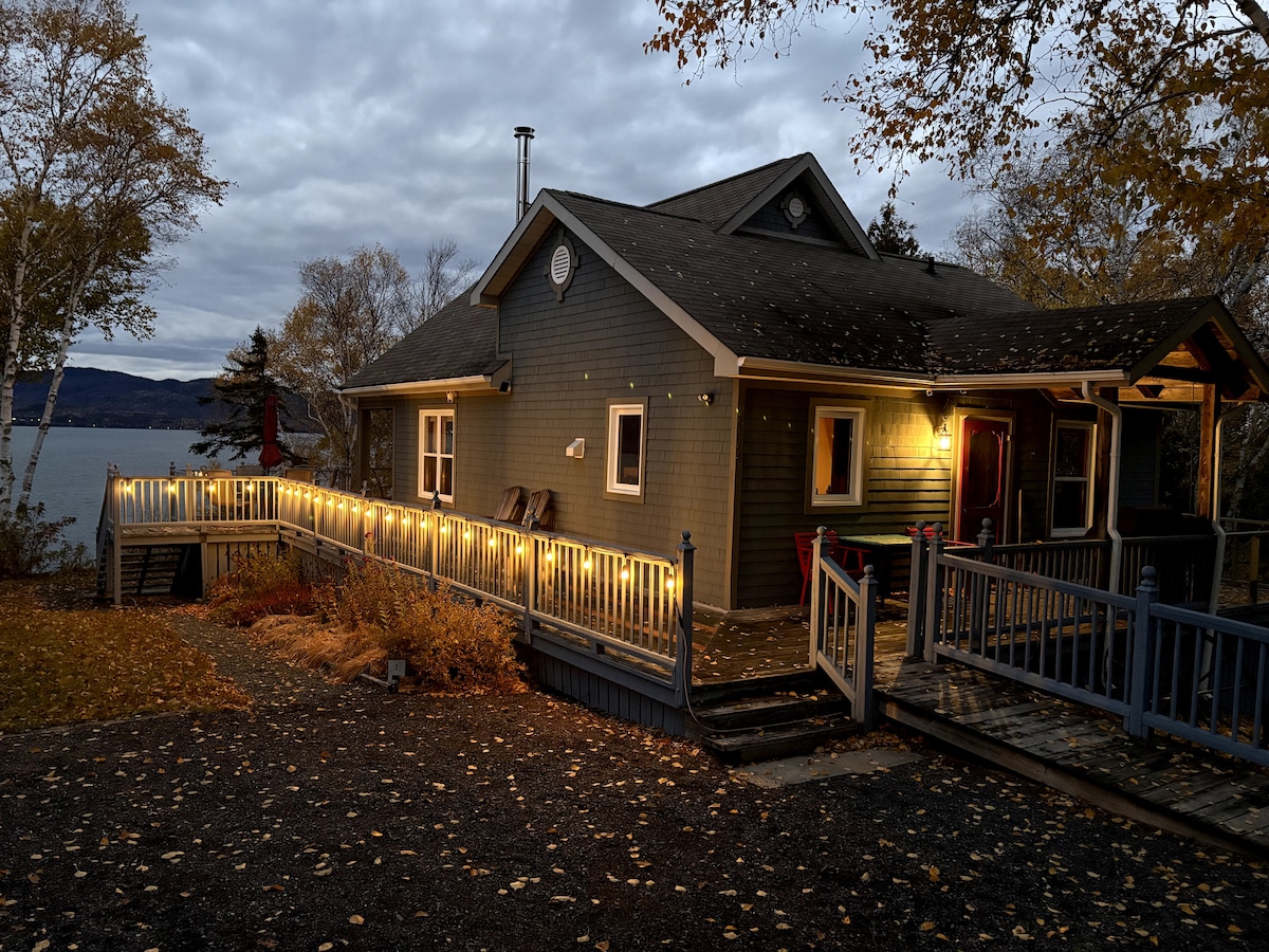Vous recherchez un petit coin privé voulant décrocher du quotidien? Idéal pour un couple, les fanatiques de coucher de soleils et ou même une jeune famille cherchant à passer du temps de qualité mémorable. Vivez l’expérience par vous-même! Ce chalet rustique offre un service complet, située sur le bord de la spectaculaire baie des Chaleurs sur un terrain privé à Charlo, Nouveau-Brunswick. *Aucune accès direct à la plage. Accès à proximité.