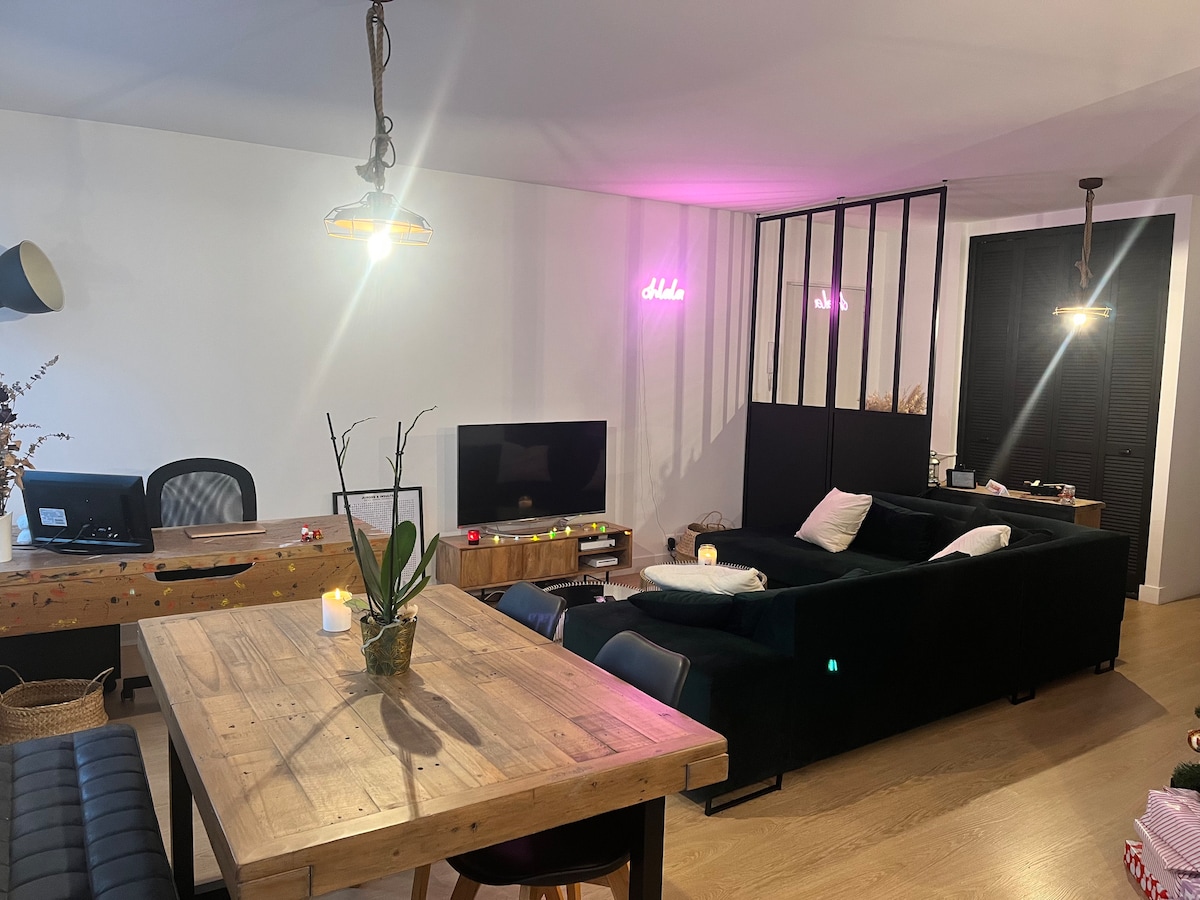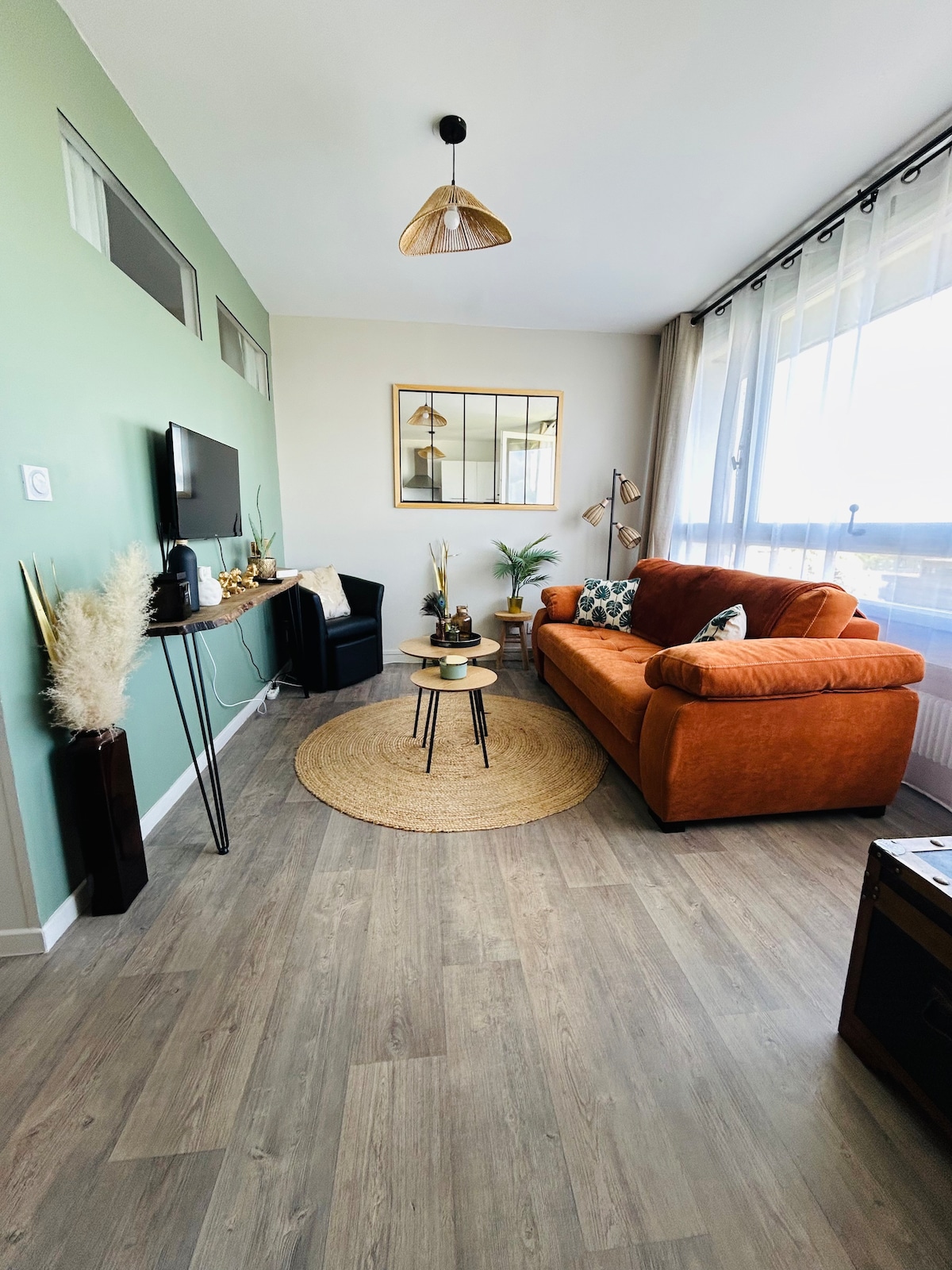 Logement de 70m2 parfaitement situé en hyper centre de Caen. Fonctionnel et optimisé pour les voyageurs. Tram et arrêt de bus au pied du logement. Des places de parking sont disponibles à 2 pas et gratuites de 19h à 9h. À pied : Quelques minutes des commodités du centre (restaurants, bars, magasins, port et sites touristiques) 2 min du centre ancien 2 min du marché du dimanche matin 10 min de la gare 20 min en voiture de la mer Profitez de la ville en plein cœur de Caen !