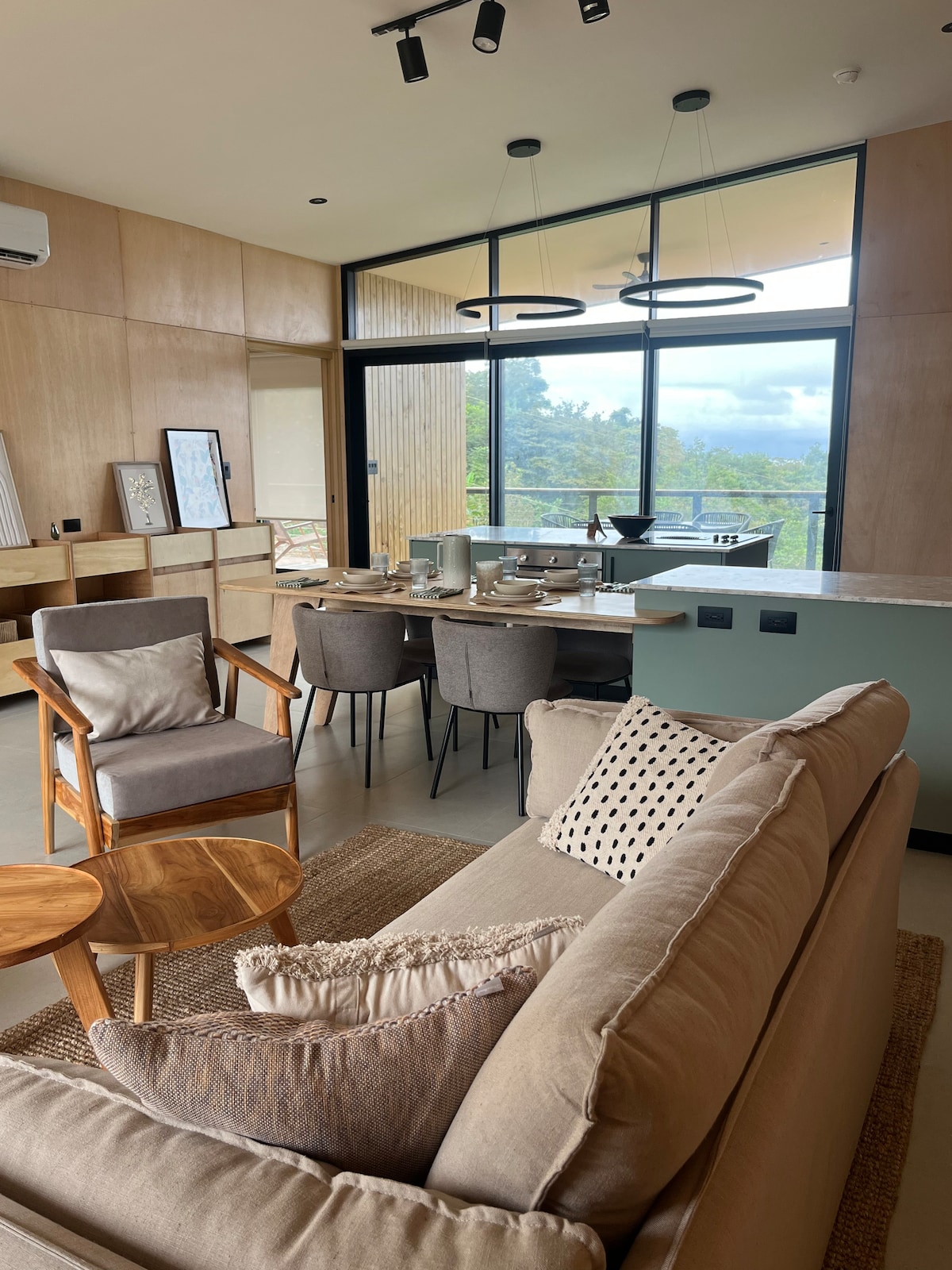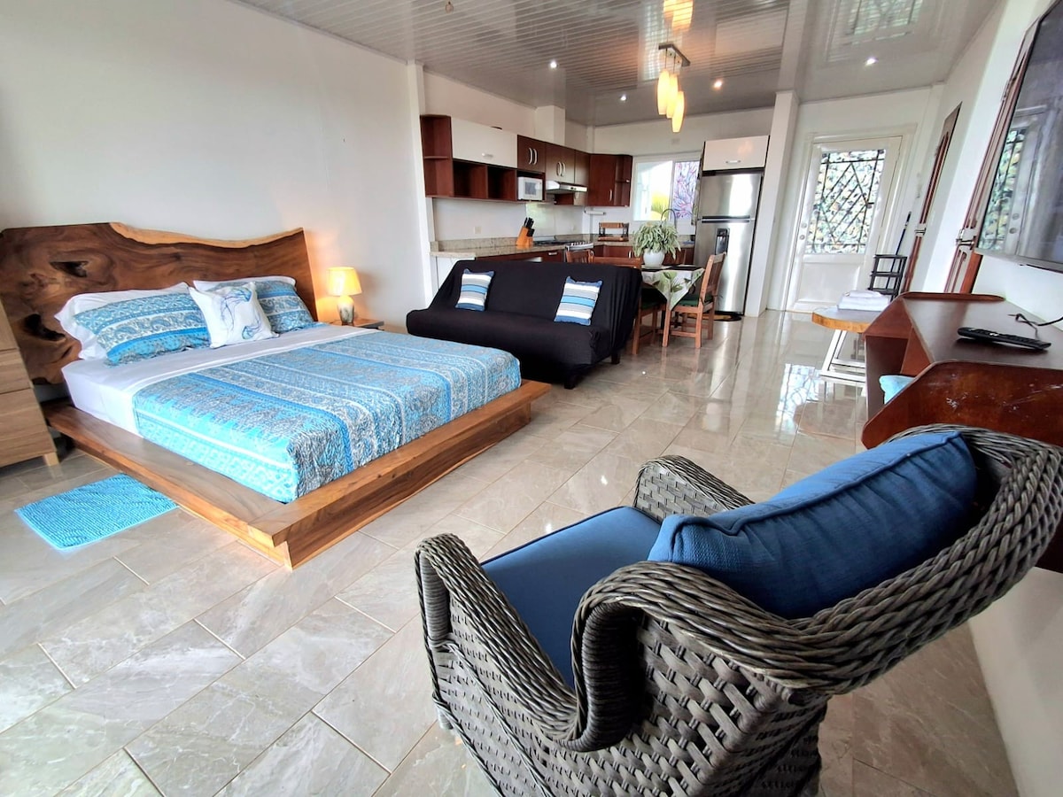 🌿 About this Accommodation Wake up to the sounds of exotic birds and enjoy coffee on your private terrace with jungle and ocean views. This modern studio blends comfort with tropical charm. This is the upper apartment in a two-unit house, with another rental unit on the ground floor. ✨ Key Features: - Private terrace & separate entrance - King-size bed & fully equipped kitchen - Dedicated workspace & Starlink Wi-Fi Experience nature and comfort in perfect harmony! 🌴✨