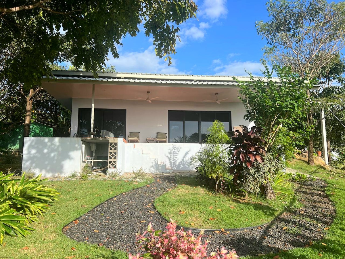 An open-style jungle home with mesmerizing treetop and mountain views. Located 10 minute walk to the beach, with a trail that leads to the River. The house is not childproof! It has three individual bedrooms, each with its own key. The price is based on the number of guests. The entire house is always yours. The house offers fiber optic WiFi and two dedicated workspaces. The property is surrounded by large trees, naturally keep the house cool and provide shelter for birds and wildlife.