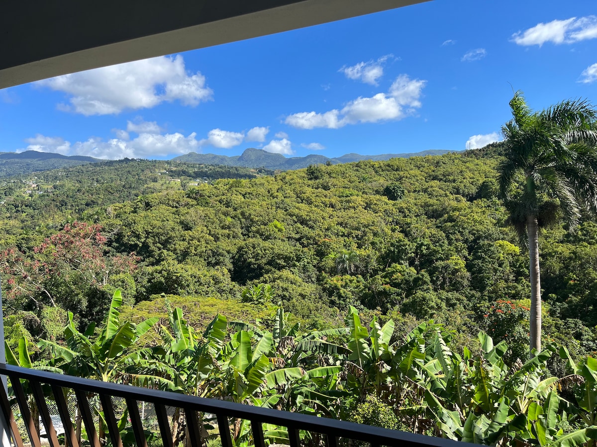 Scenic Solitude in Rio Grande, surround yourself by the beauty and tranquility of the mountains in El Yunque. 15 minutes from the beach, 25 minutes from San Juan Airport and 15 minutes from the iconic waterfall Espiritu Santo. Private house, fully equipped with 3 bedrooms, 4 bathrooms, kitchen, dining room, private balconies, outdoor eating area, and private parking area. Beautiful view of the National Forest. Minutes away from outlets, restaurants, resorts and major retail stores.