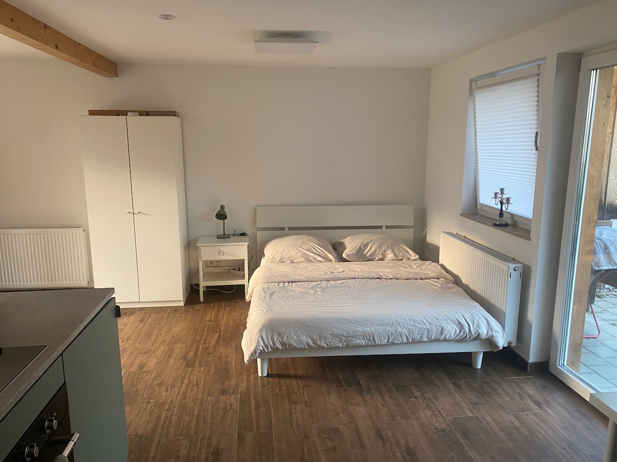 The apartment in an apartment building is a 5-minute walk from Lake Ammersee. Access is via 59 steps up and 40 steps down - which also makes your stay a training camp! The 1-room apartment has a sofa bed (mattress on slatted frame, 1.4 * 2 m) and a new kitchenette (no oven, 2 hotplates, microwave, fridge). Workation at the Ammersee? No problem: a workplace by the window allows you to combine the necessary with the pleasant.