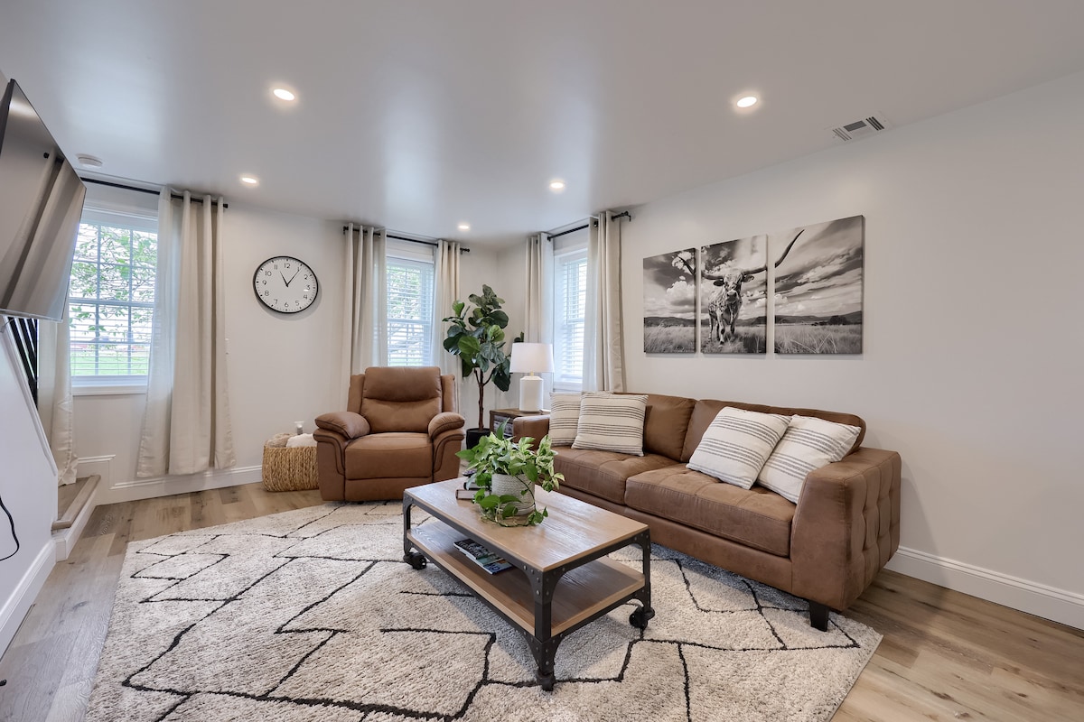 River views and easy access to everything from this perfectly located home base. The spacious unit offers guests a cozy yet expansive space in the heart of the city. The living area features ample seating facing a TV, ideal for relaxation. The kitchen is fully equipped for meal prep, and the bedroom offers a comfortable king size bed and 65" TV. One dedicated parking space is available for added convenience. Experience historic charm with modern amenities for a memorable stay in Harrisburg.