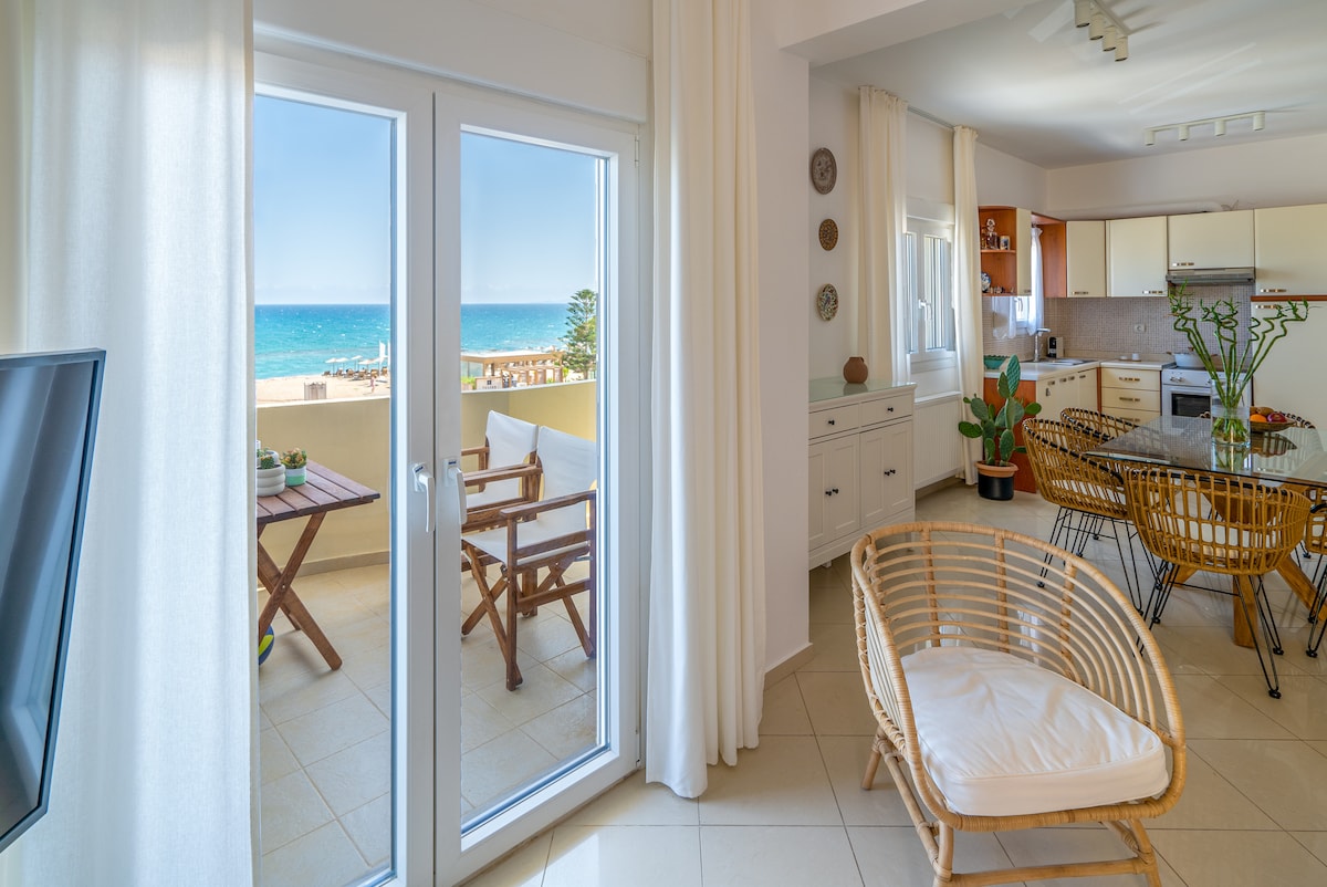 Bask by the Beach in a Chic Apartment Overlooking the Sea. Enjoy breathtaking sunsets from this modern apartment just steps away from Ammoudara beach. Start your day with a swim or relax on the balcony with a sea view. Traditional Cretan lace and artwork add a touch of folklore to the stylish interior. The house is fully equipped with everything you need, including a kitchen and modern amenities like Wi-Fi, air conditioning, and a TV. Take a short drive og 10 minutes to Heraklion city center.