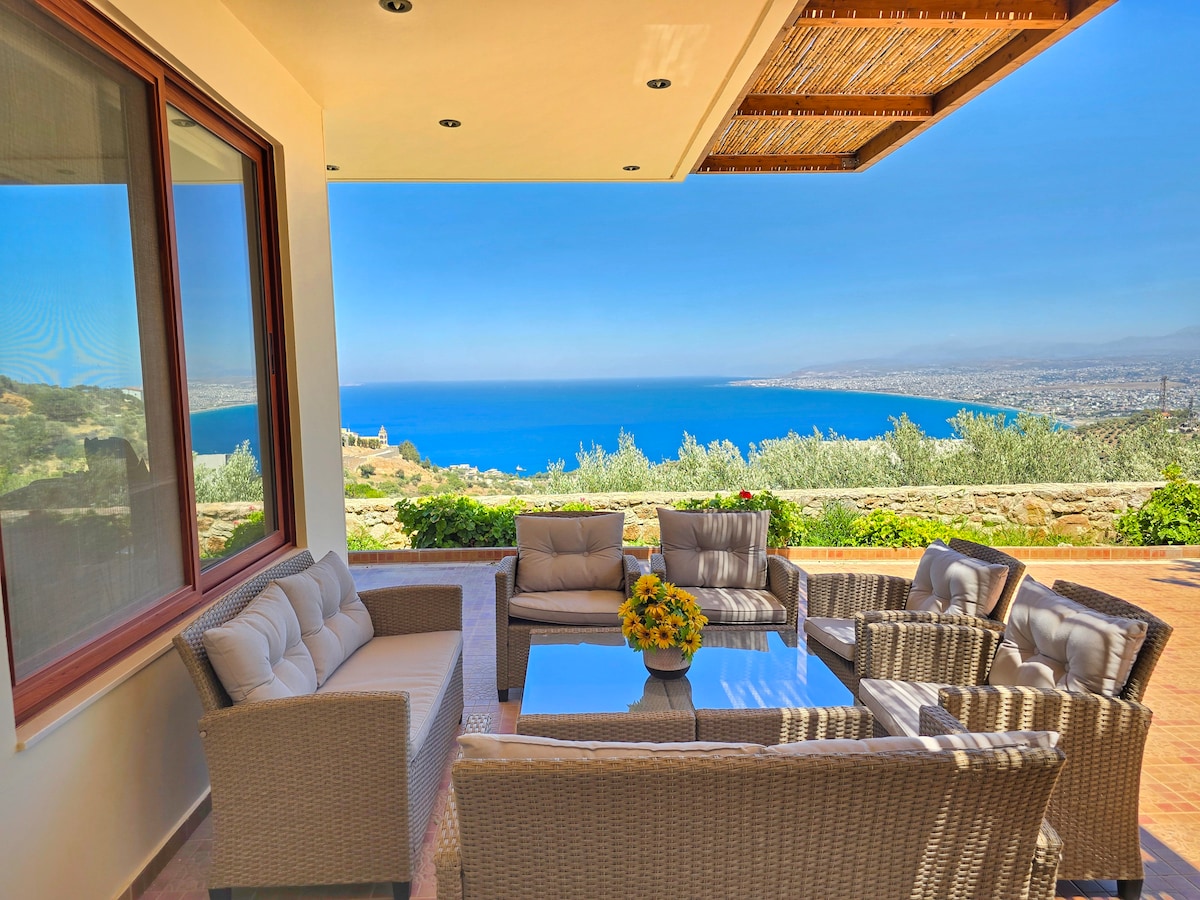Villa Balcony is located on the mountainside of Pantanassa, next to the traditional village of Rodia. The location of the villa is very advantageous because it is located on the eastern side of the mountain and offers spectacular view of the whole city of Heraklion, the bay of Heraklion, the island of Dia and the Aegean sea. Also, due to the location of the villa, at night, the moonrise offers a beautiful and romantic view.